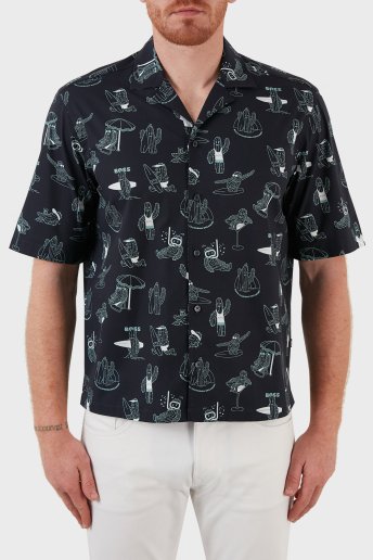 Pamuklu Baskılı Regular Fit Kısa Kollu Erkek Gömlek 50471795 404 LACİVERT