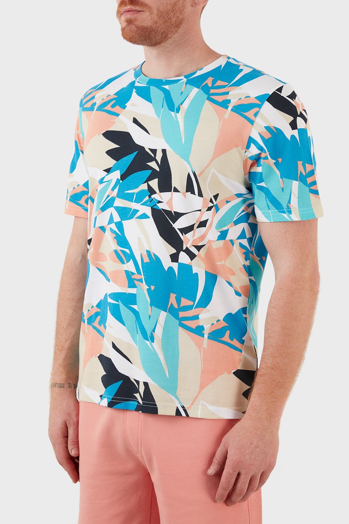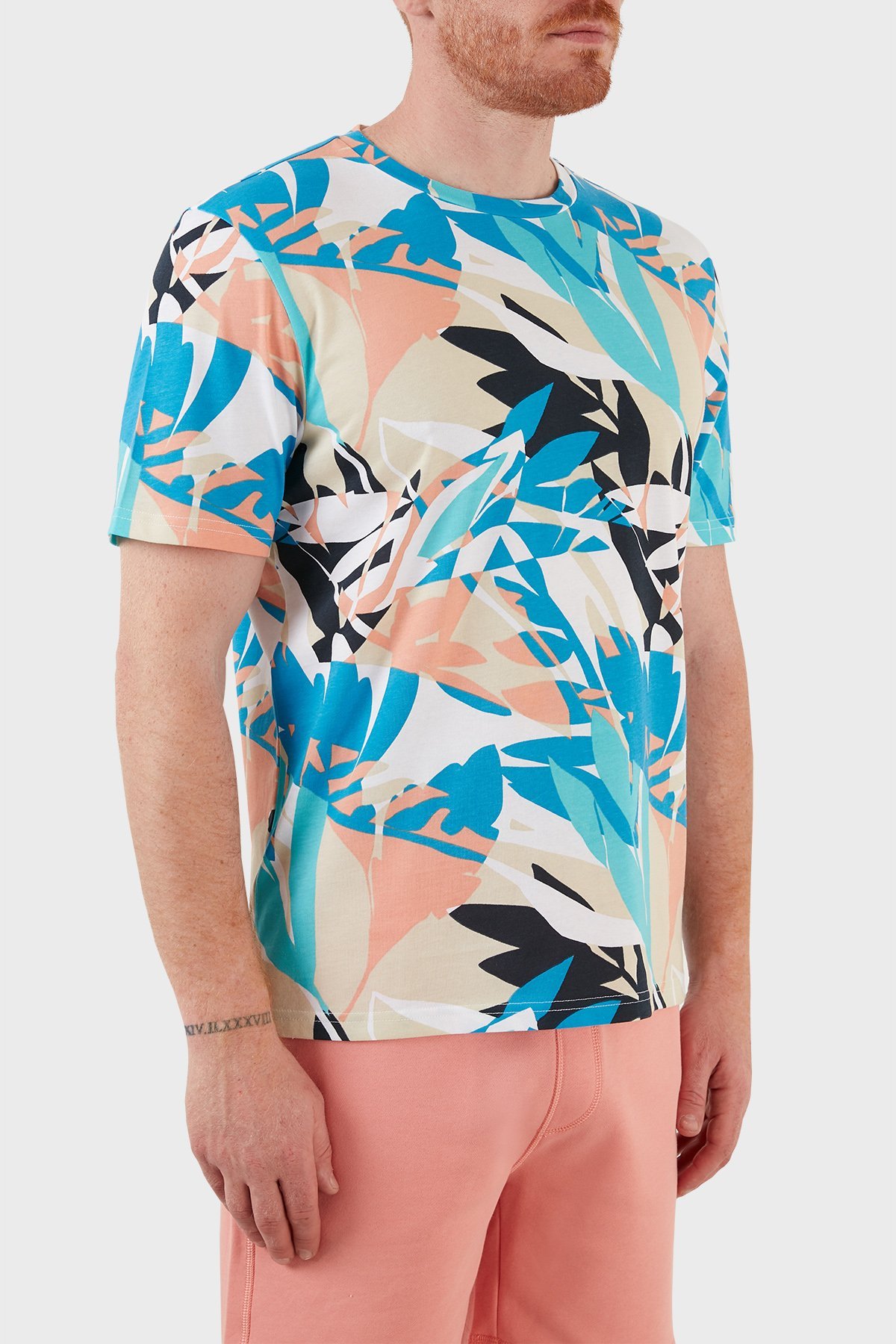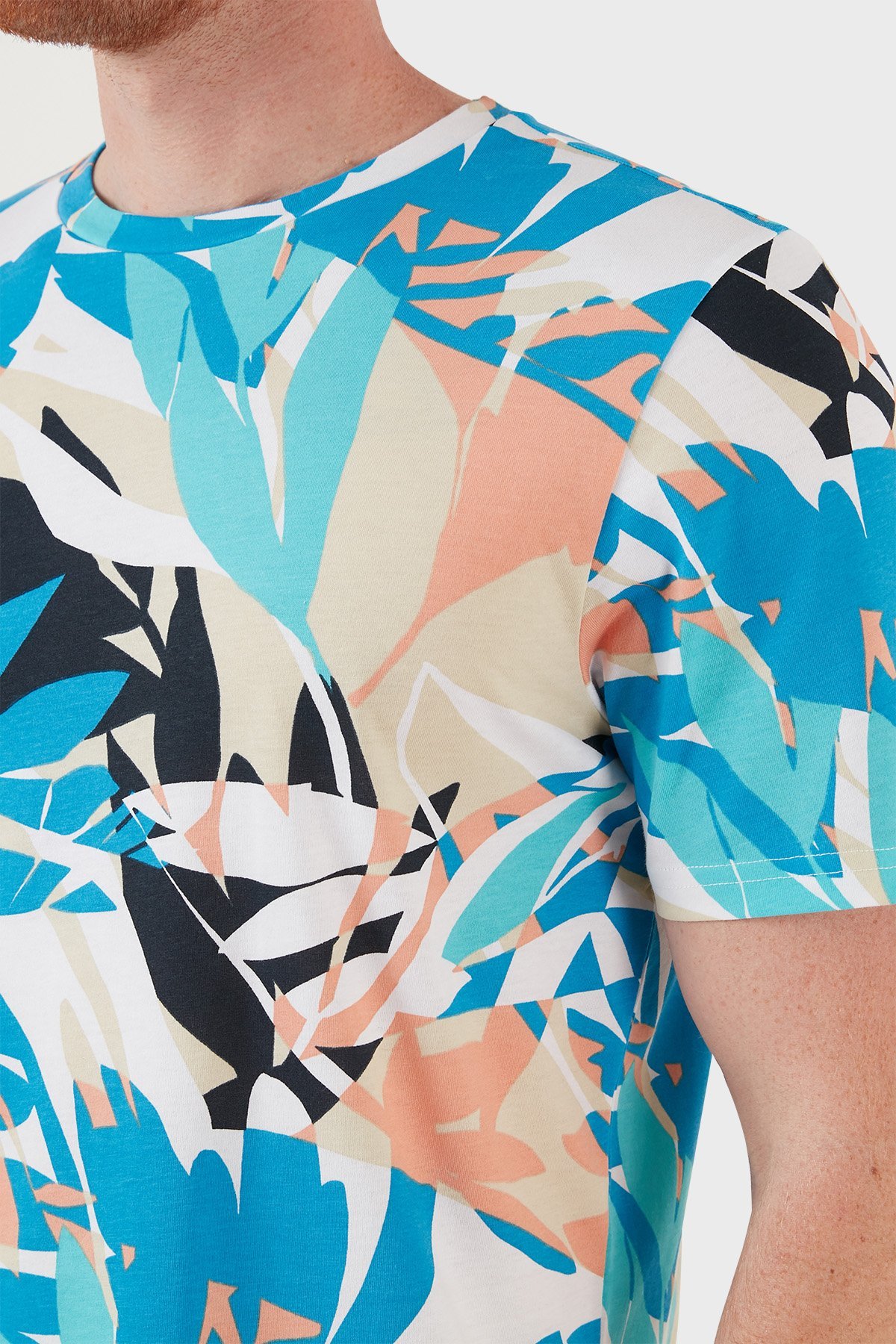 Pamuklu Desenli Regular Fit Bisiklet Yaka Erkek T Shirt 50466775 439 MAVİ-BEYAZ
