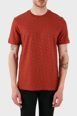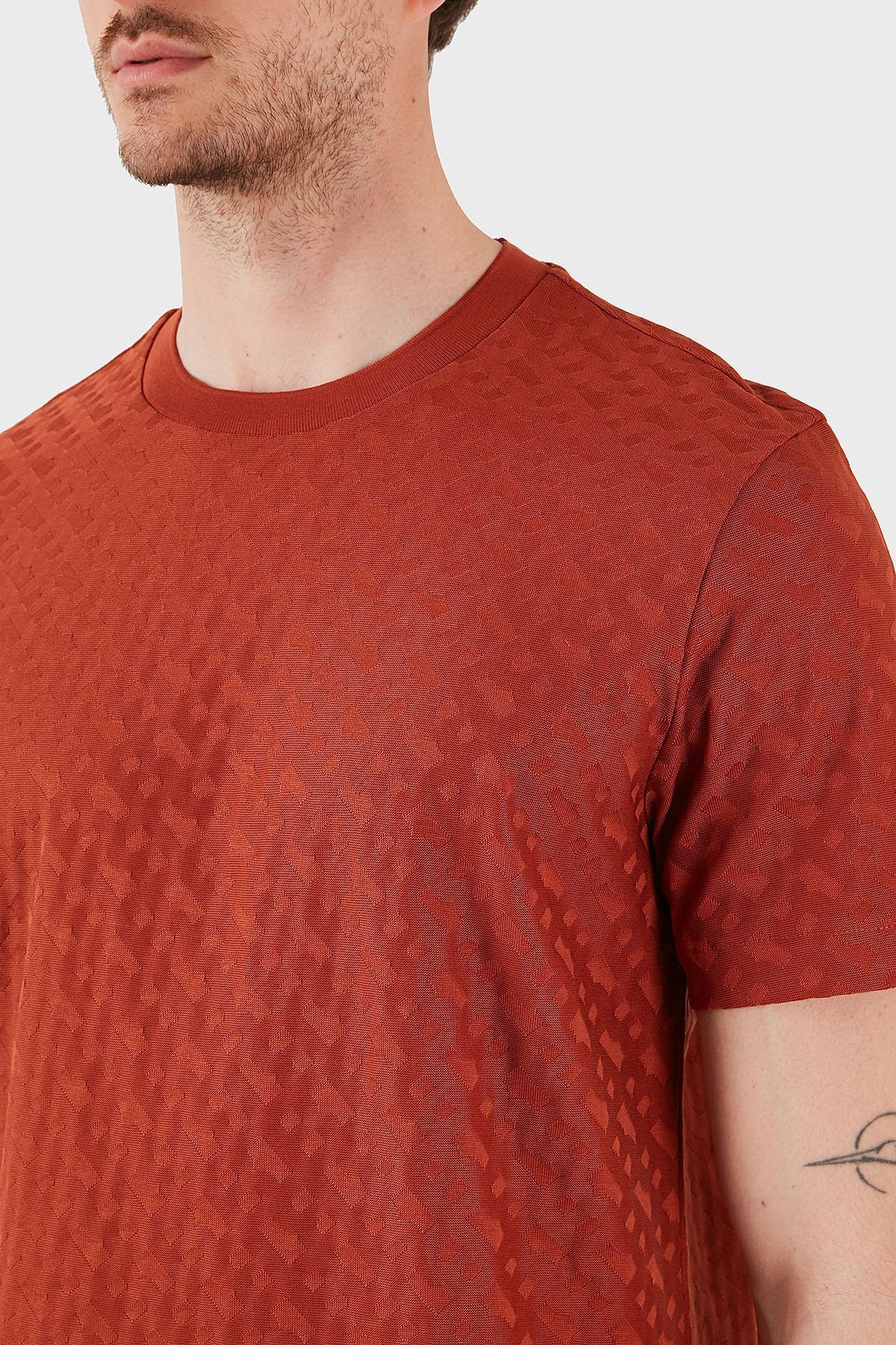 Pamuklu Monogram Logo Baskılı Regular Fit Bisiklet Yaka Erkek T Shirt 50537131 806 KİREMİT