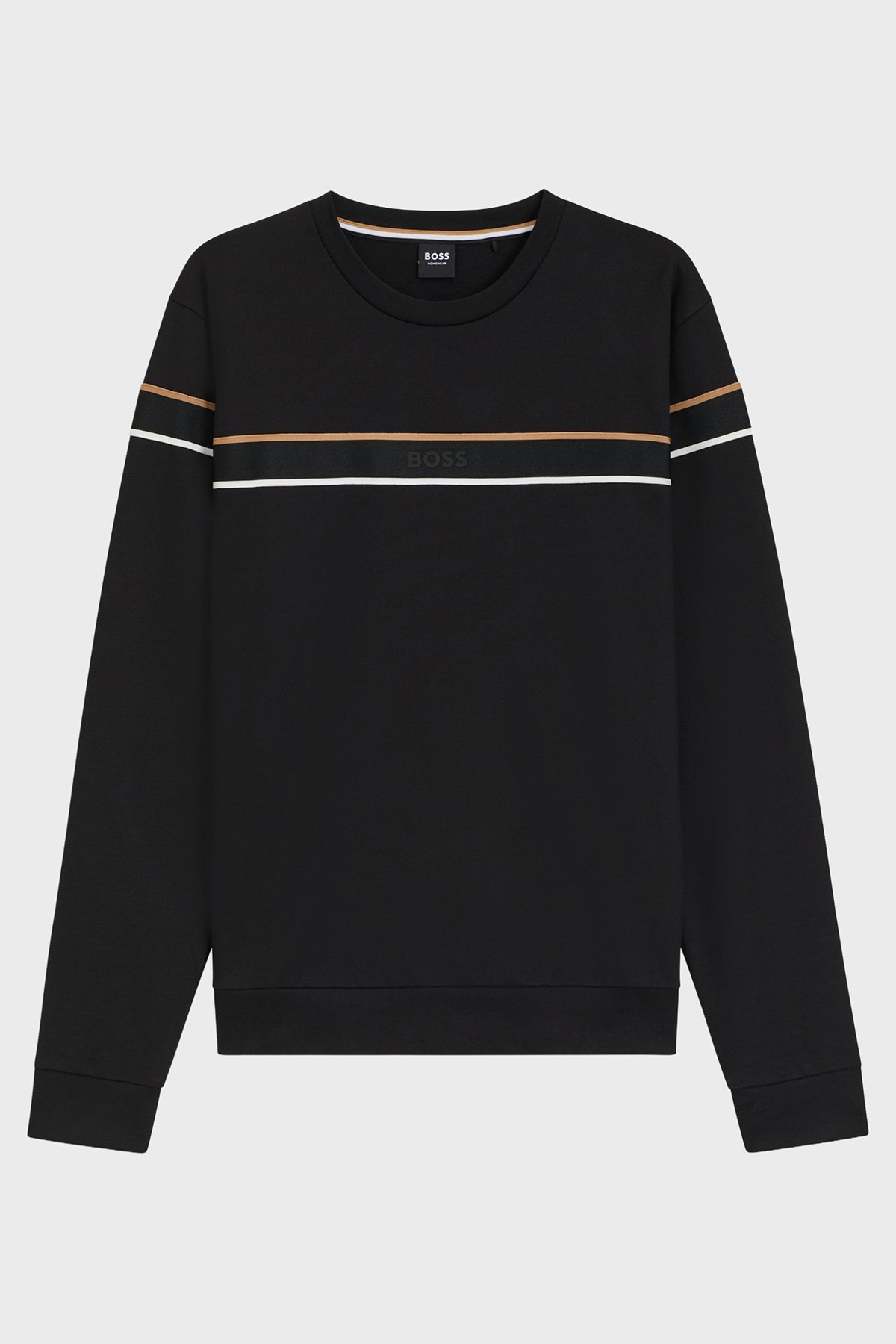 Pamuklu Regular Fit Bisiklet Yaka Şerit Detaylı Logolu Erkek Sweat 50545589 001 SİYAH