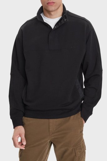 Pamuklu Regular Fit Yarım Fermuarlı Dik Yaka Logolu Erkek Sweat 50545753 001 SİYAH