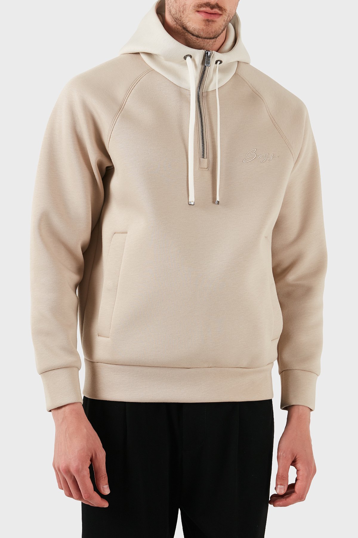 Pamuklu Relaxed Fit Yarım Fermuarlı Kapüşonlu Yaka Erkek Sweat 50531360 275 BEJ