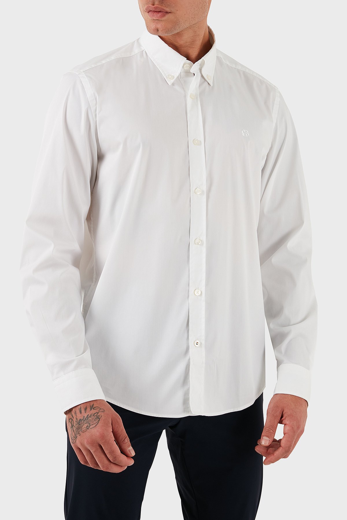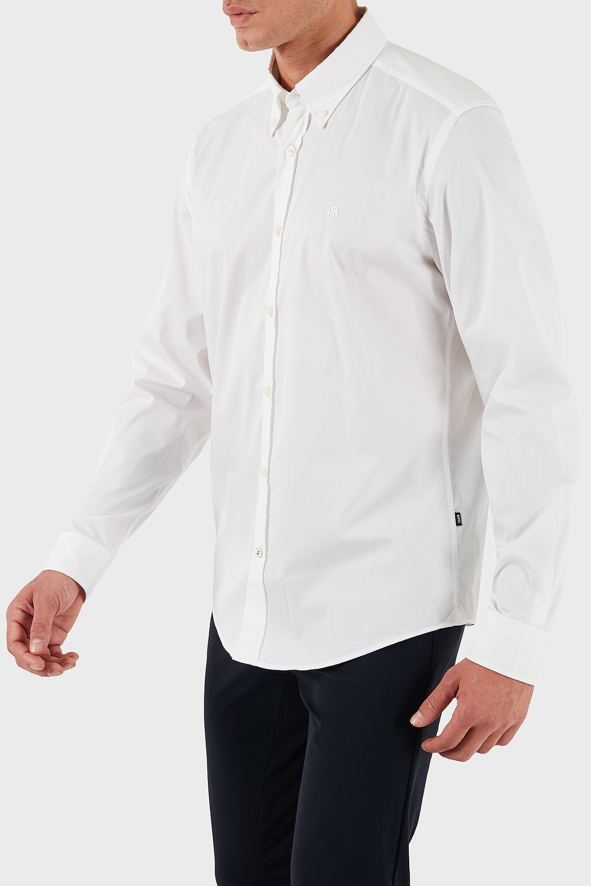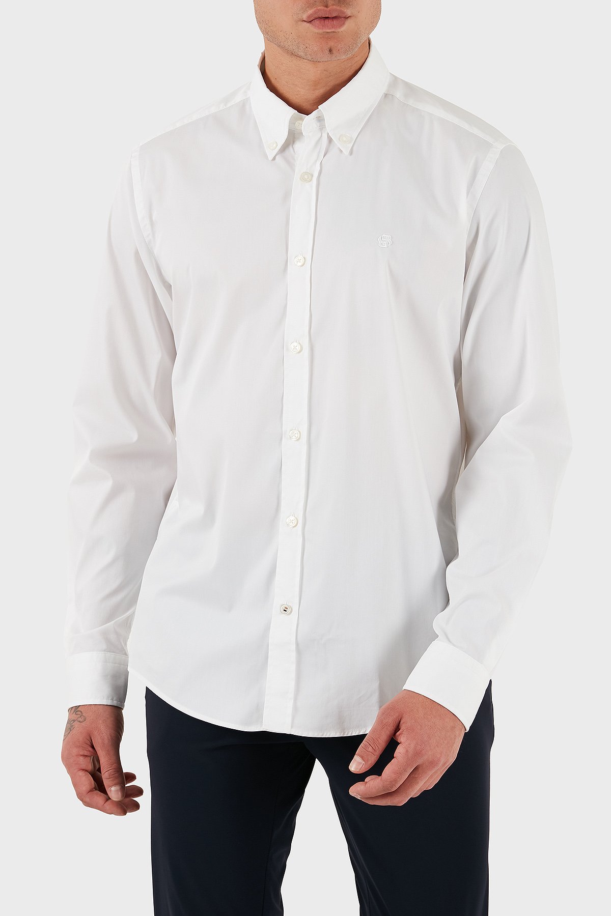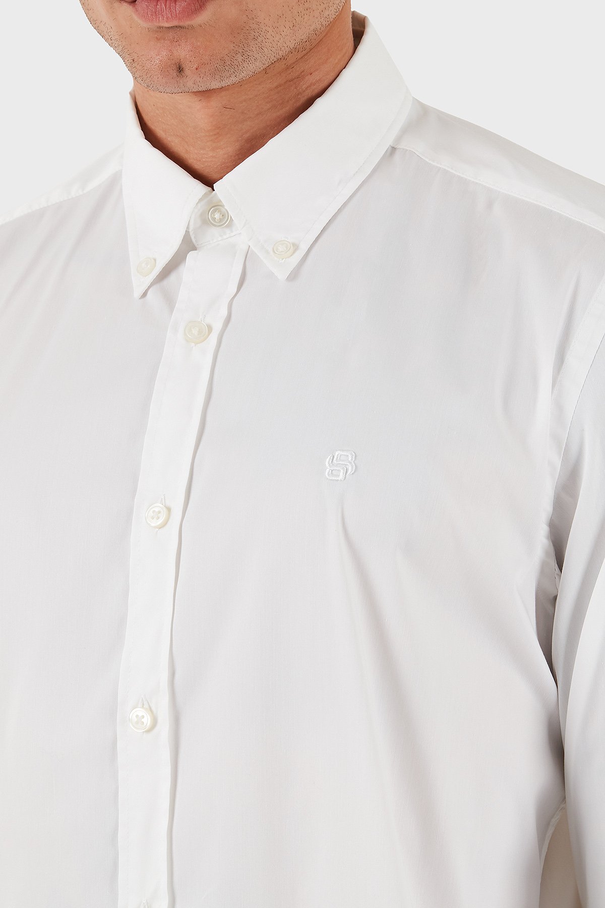 Pamuklu Slim Fit Düğmeli Yaka Uzun Kollu Erkek Gömlek 50545227 100 BEYAZ