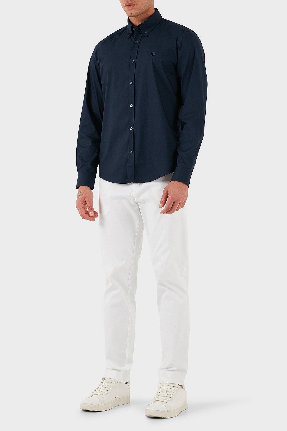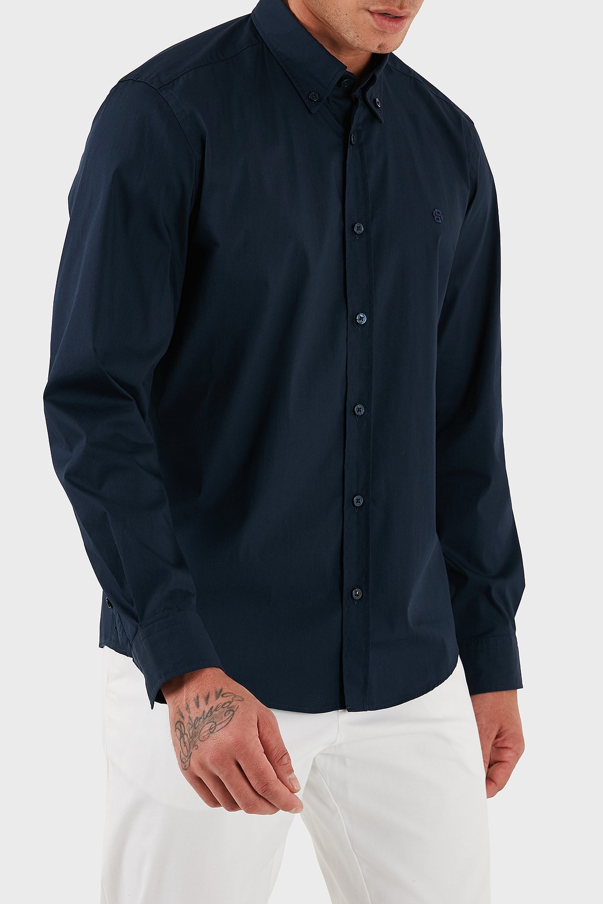 Pamuklu Slim Fit Düğmeli Yaka Uzun Kollu Erkek Gömlek 50545227 404 LACİVERT