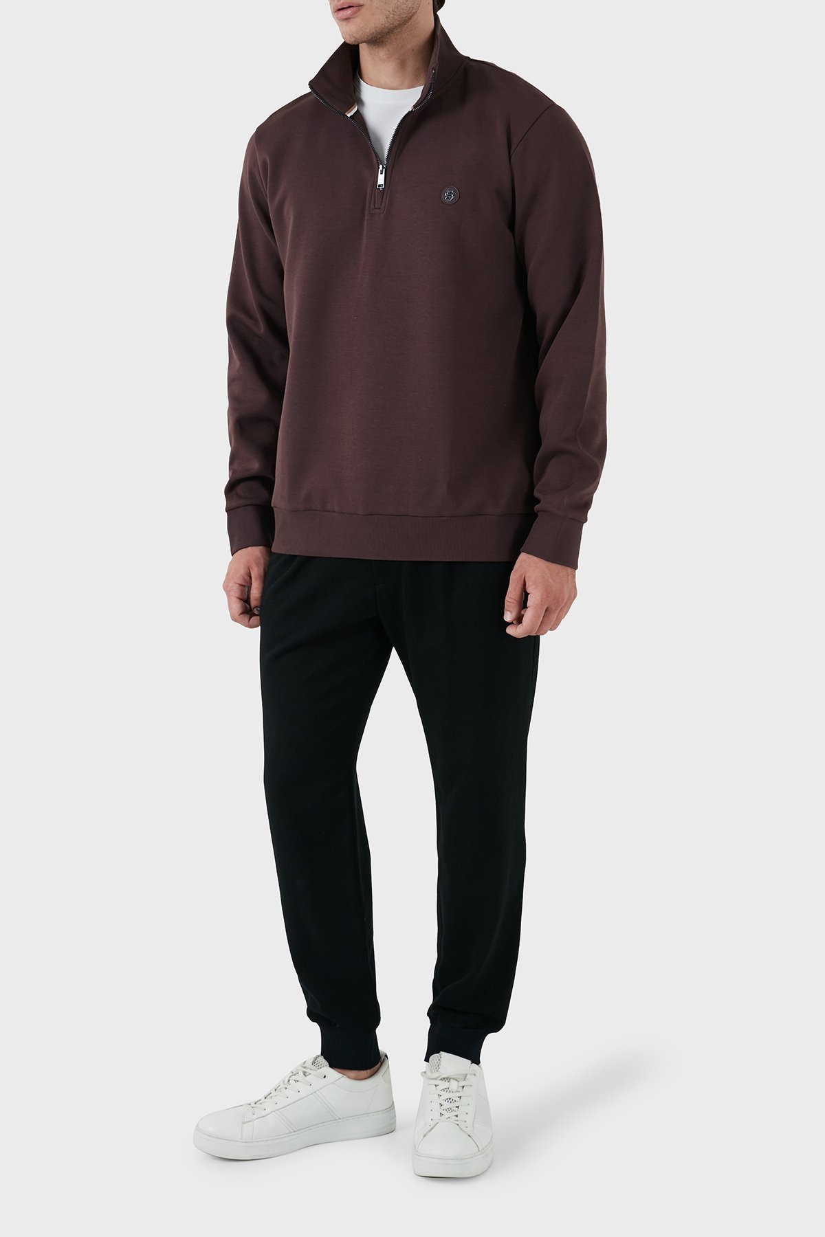 Pamuklu Yarım Fermuarlı Dik Yaka Erkek Sweat 50520781 642 KAHVE