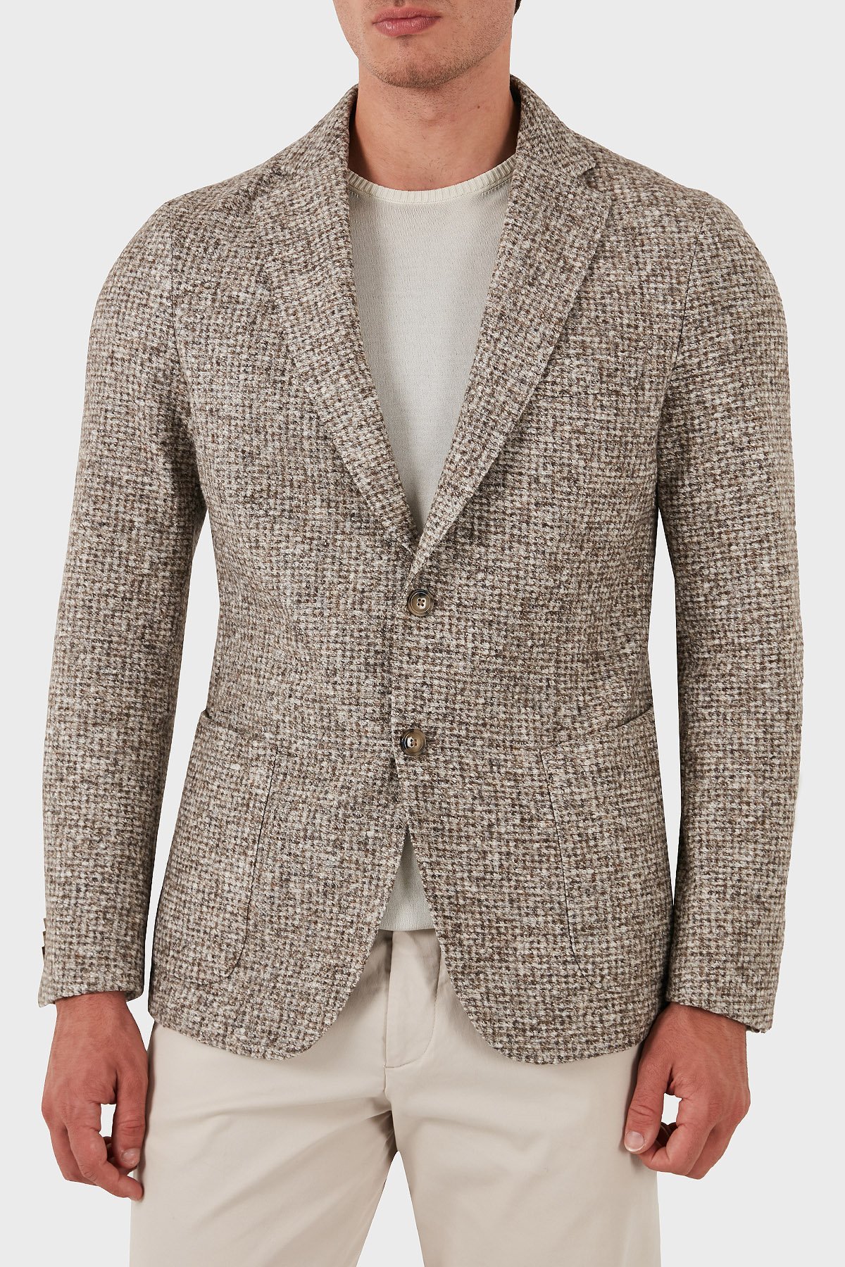 Pamuklu Yünlü Slim Fit Kırçıllı Mono Yaka Erkek Ceket 50528199 131 KREM