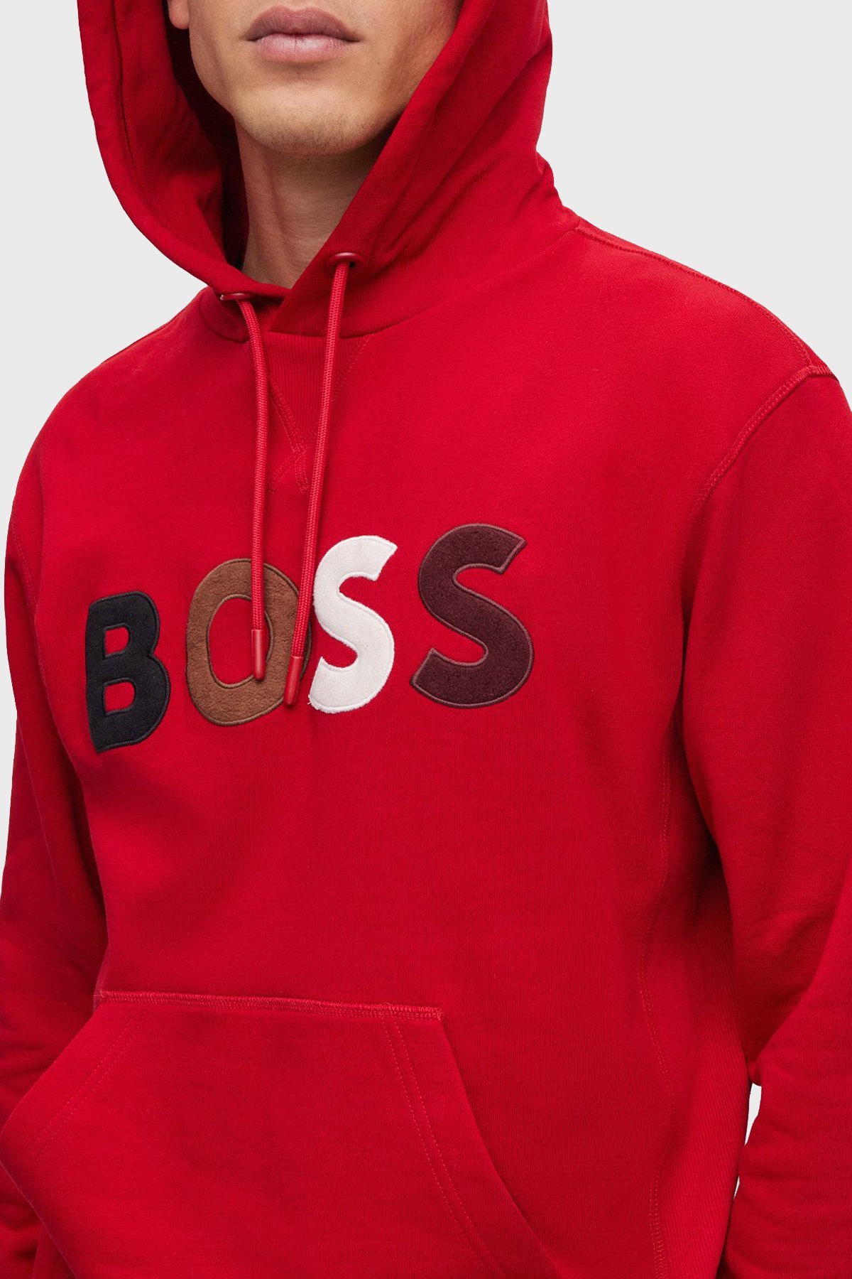 Polar Logolu Pamuklu Havlu Kumaştan Relaxed Fit Kapüşonlu Erkek Sweat 50477047 620 KIRMIZI