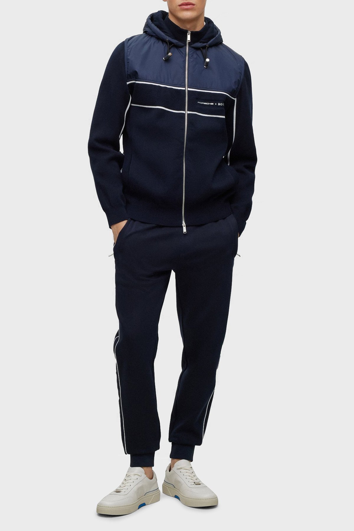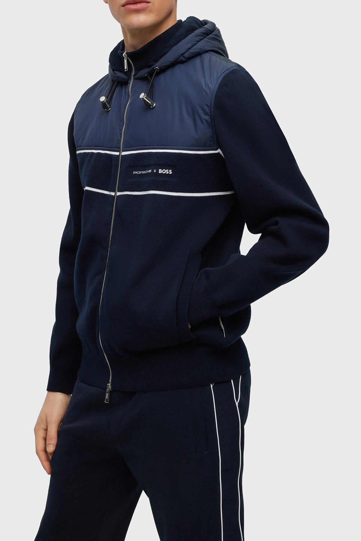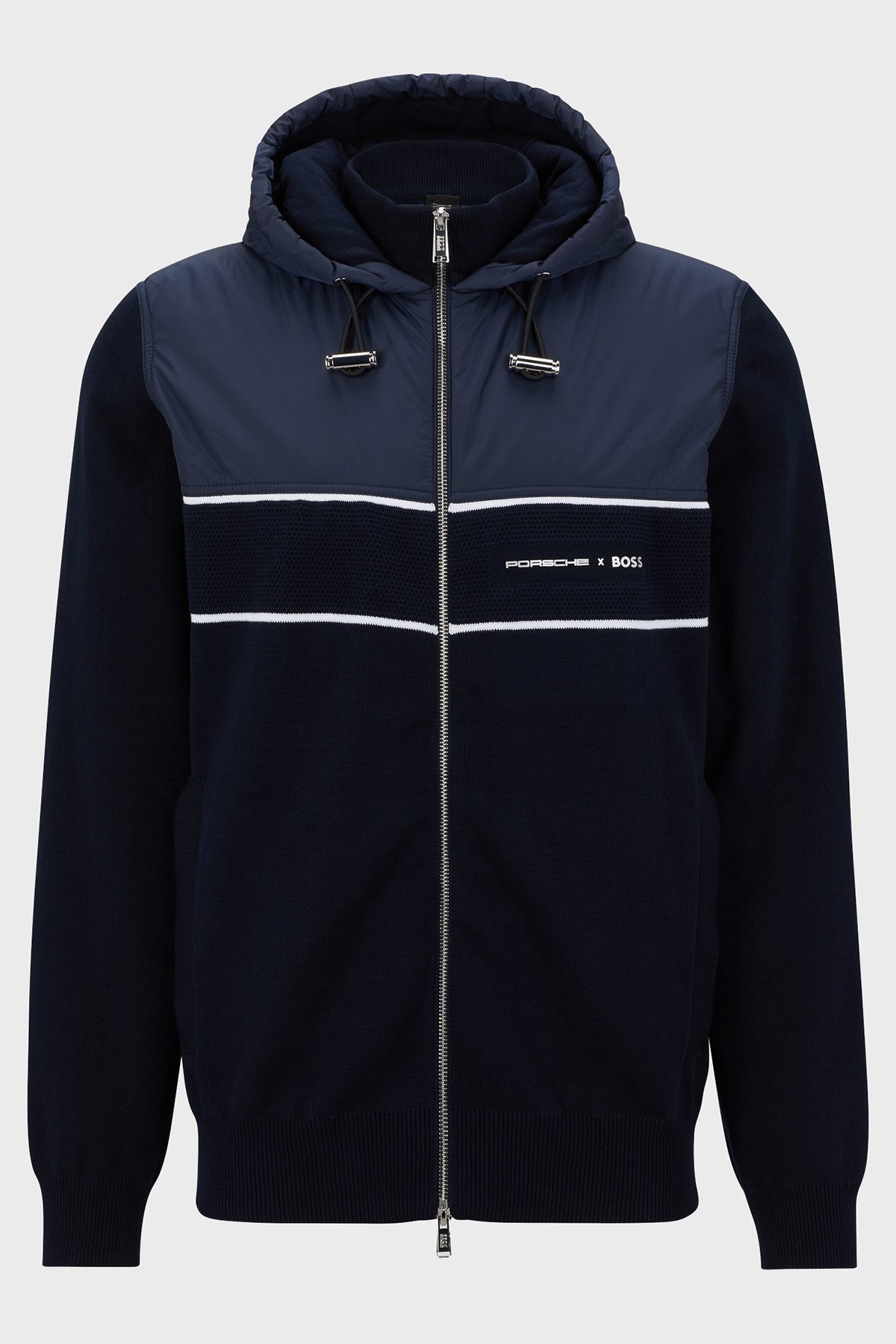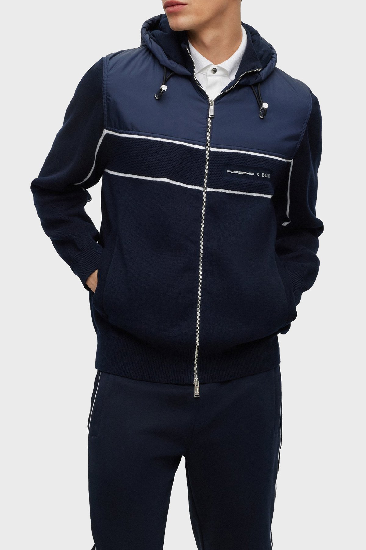 Porsche Desenli Pamuklu Regular Fit Fermuarlı Kapüşonlu Spor Erkek Ceket 50489069 404 LACİVERT