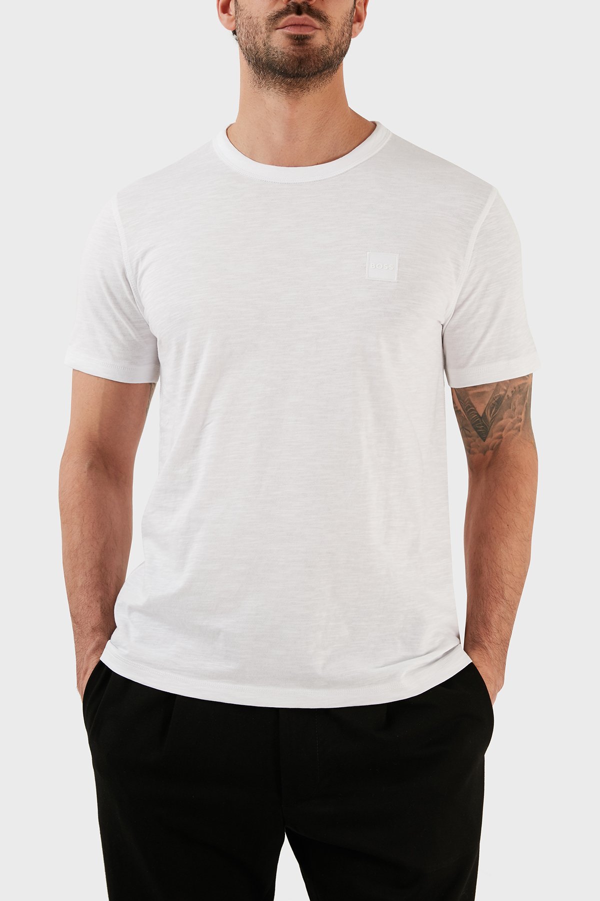 Regular Fit Bisiklet Yaka Pamuklu Jarse Erkek T Shirt 50478771 100 BEYAZ