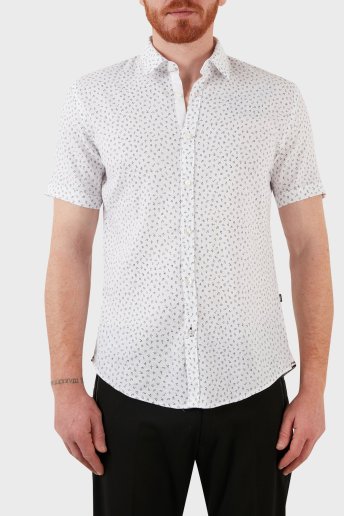 Regular Fit Desenli Keten Erkek Gömlek 50468075 405 BEYAZ