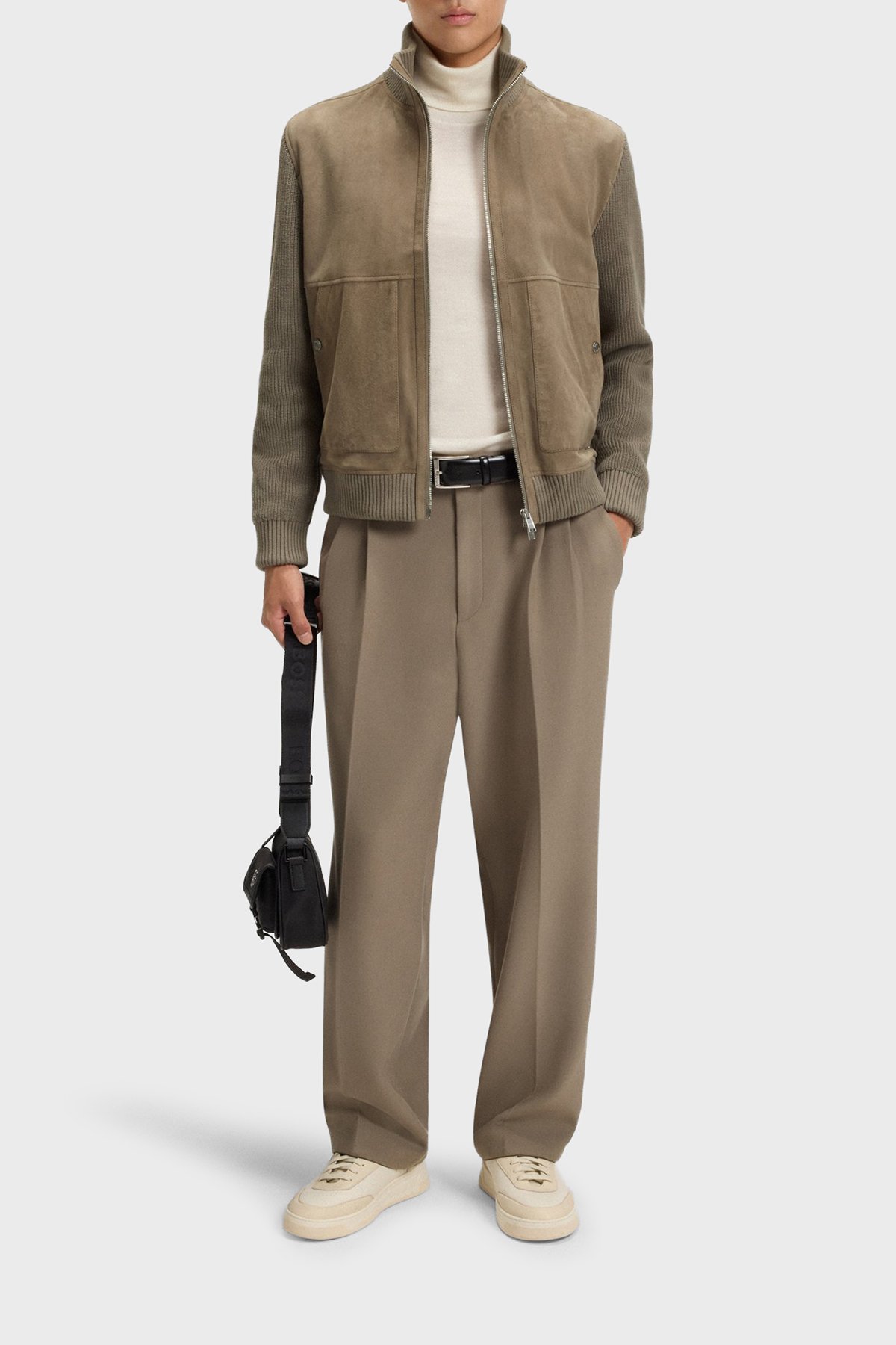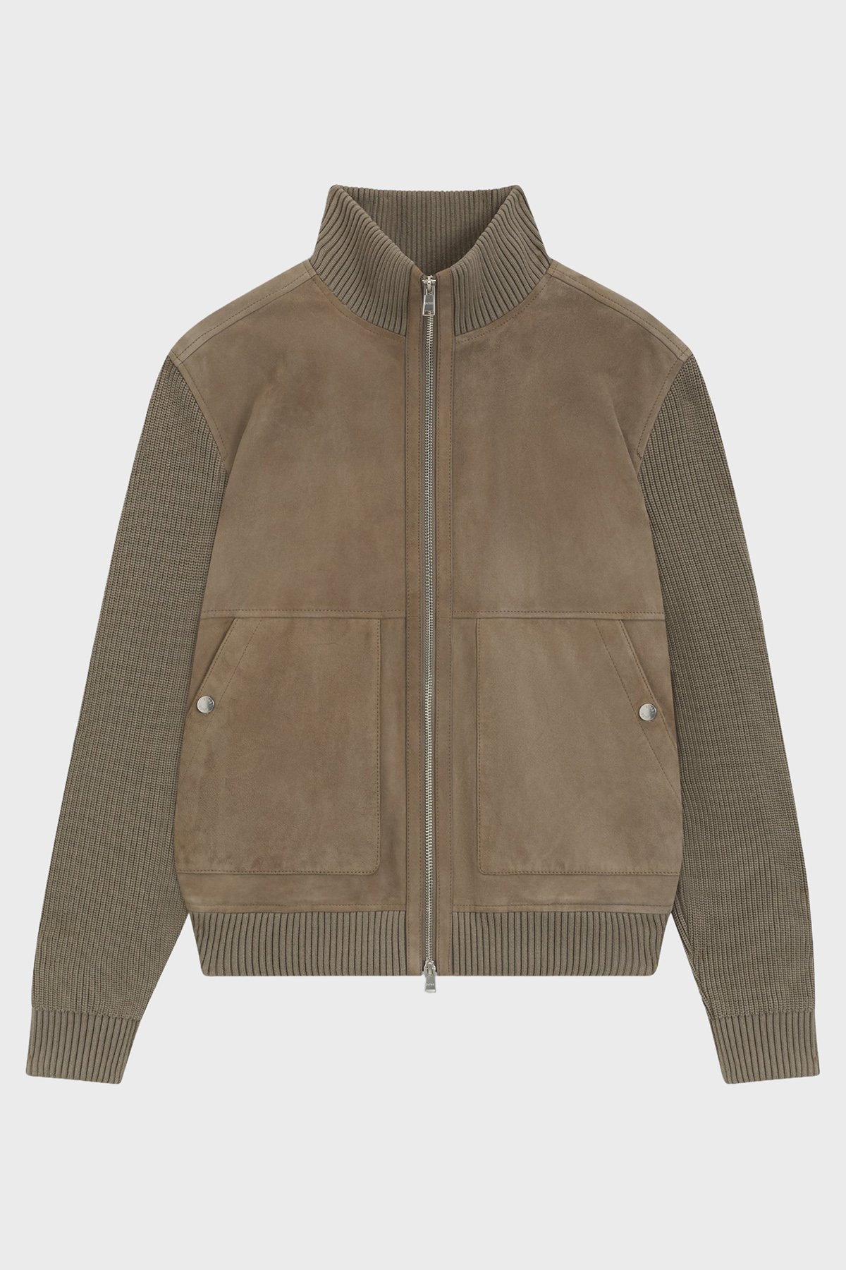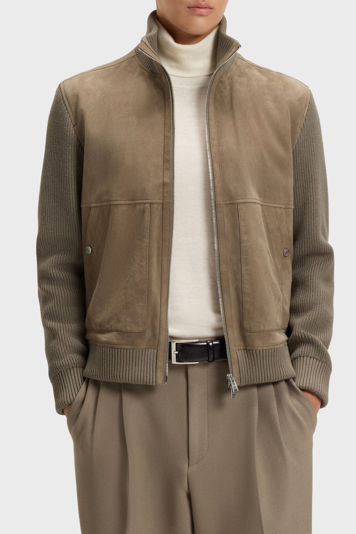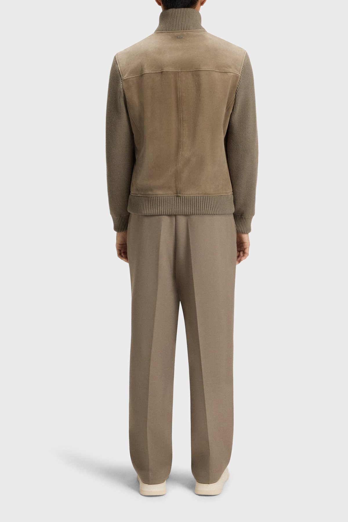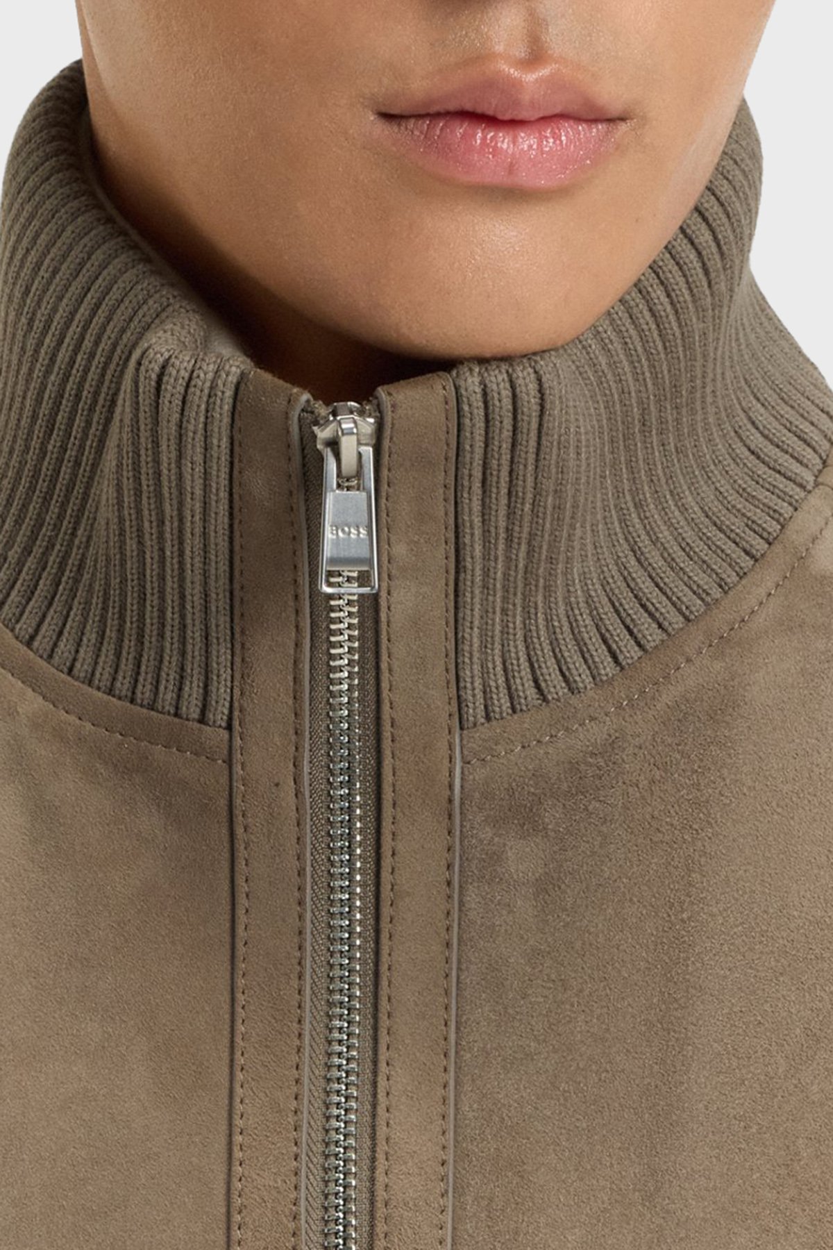 Regular Fit Dik Yaka Pamuk Karışımlı Kollu Süet Erkek Mont 50547673 245 HAKİ