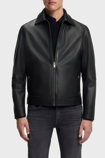Regular Fit Klasik Yaka Fermuarlı Hakiki Erkek Deri Ceket 50552141 001 SİYAH
