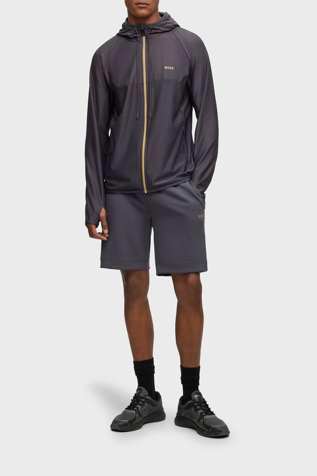 Regular Fit Yansıtıcı Desenli Aktif Streç Fermuarlı Kapüşonlu Erkek Sweat 50493465 027 KOYU GRİ