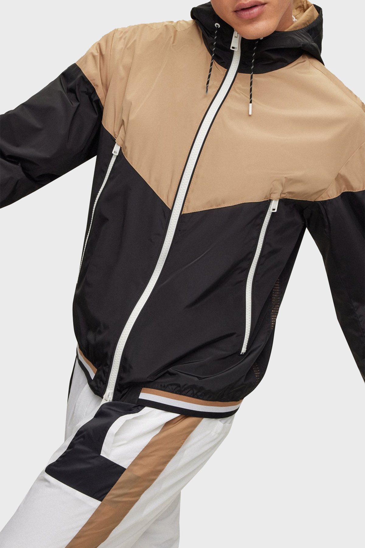 Renk Bloklu Su Tutmaz Kapüşonlu Regular Fit Mevsimlik İnce Erkek Mont 50483934 260 BEJ