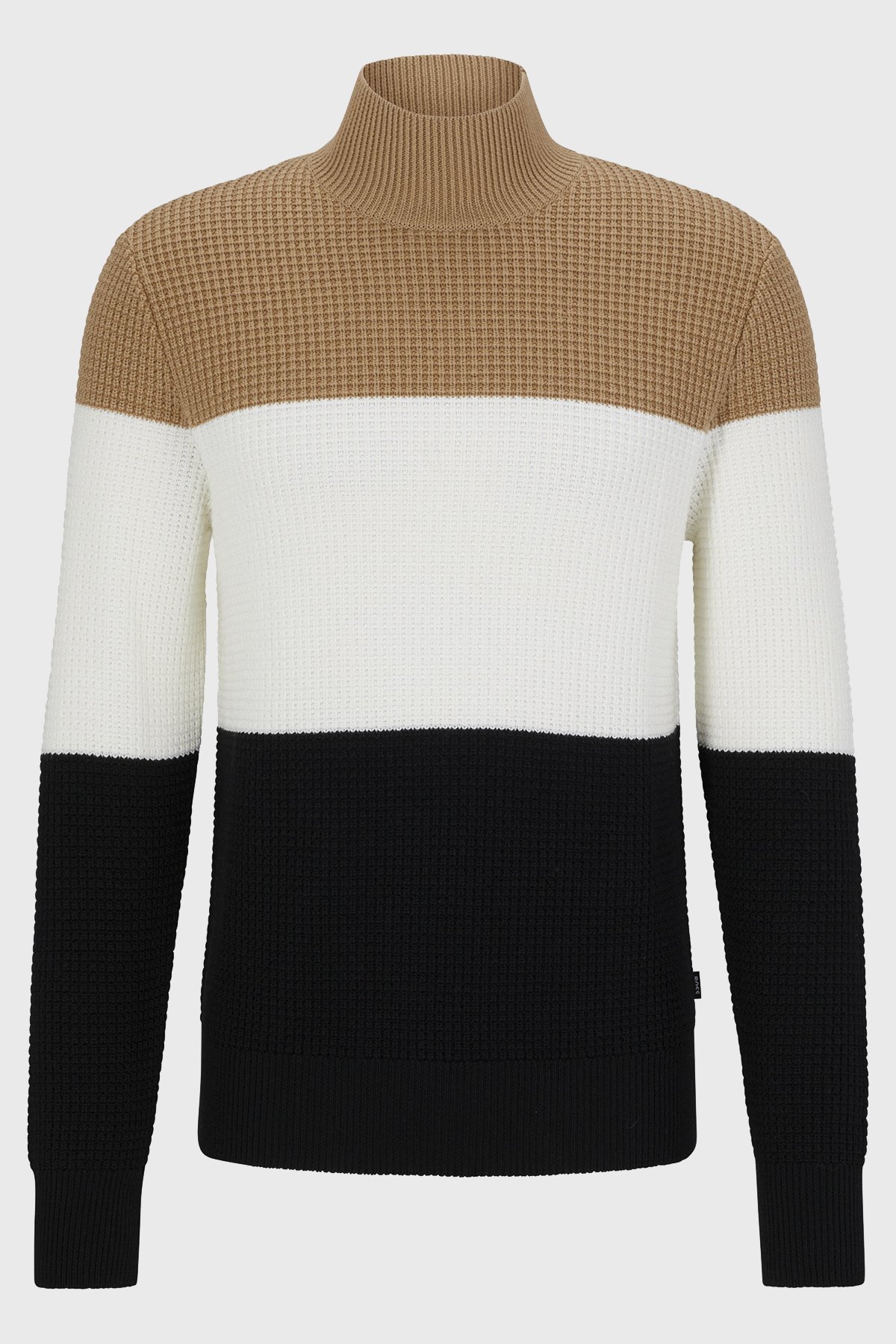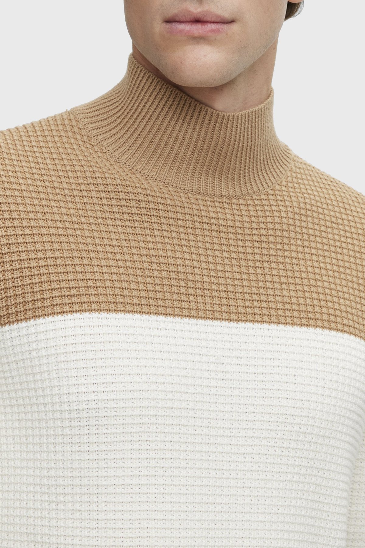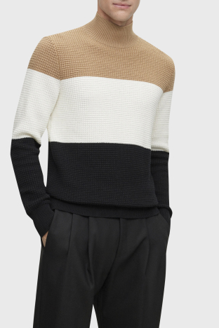 Renk Bloklu Yün Karışımlı Balıkçı Yaka Regular Fit Erkek Kazak 50500656 001 SİYAH