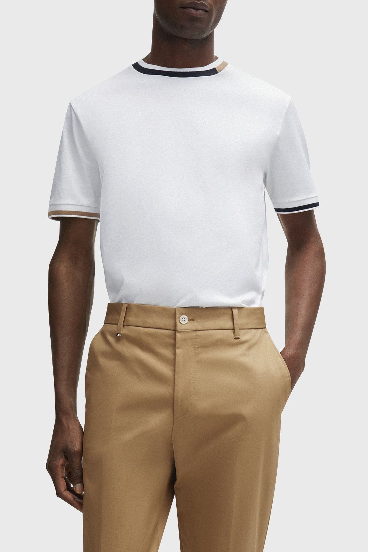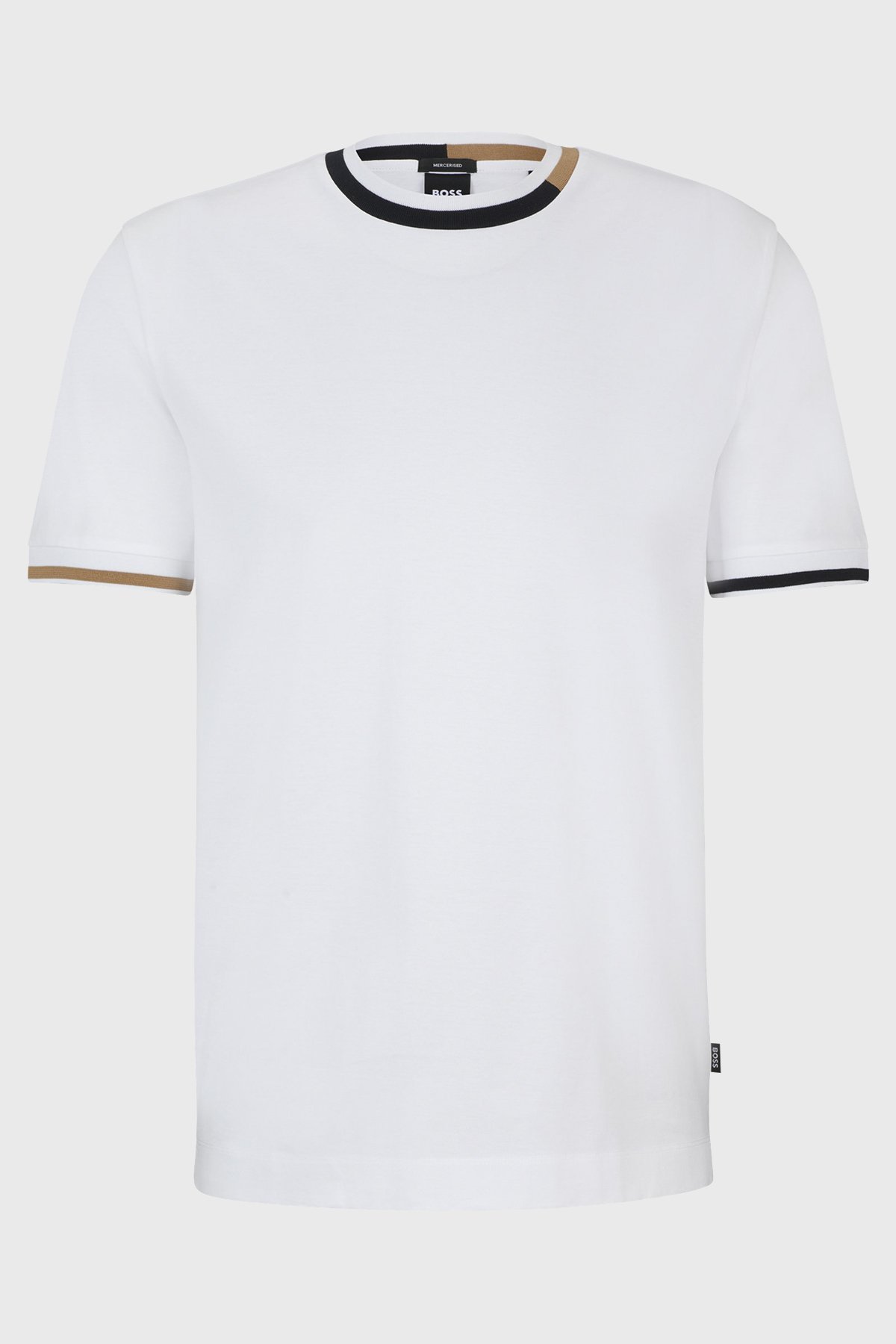 Şerit Detaylı Merserize Pamuklu Bisiklet Yaka Regular Fit Erkek T Shirt 50513364 100 BEYAZ