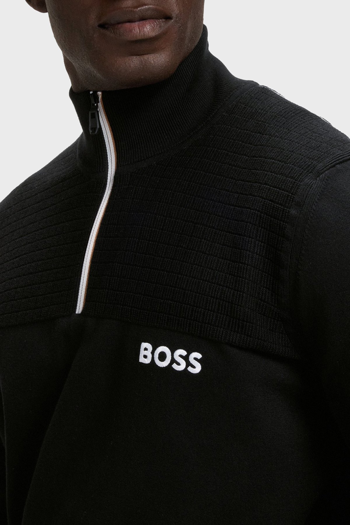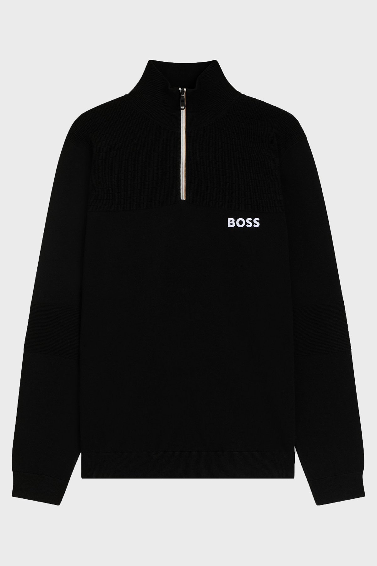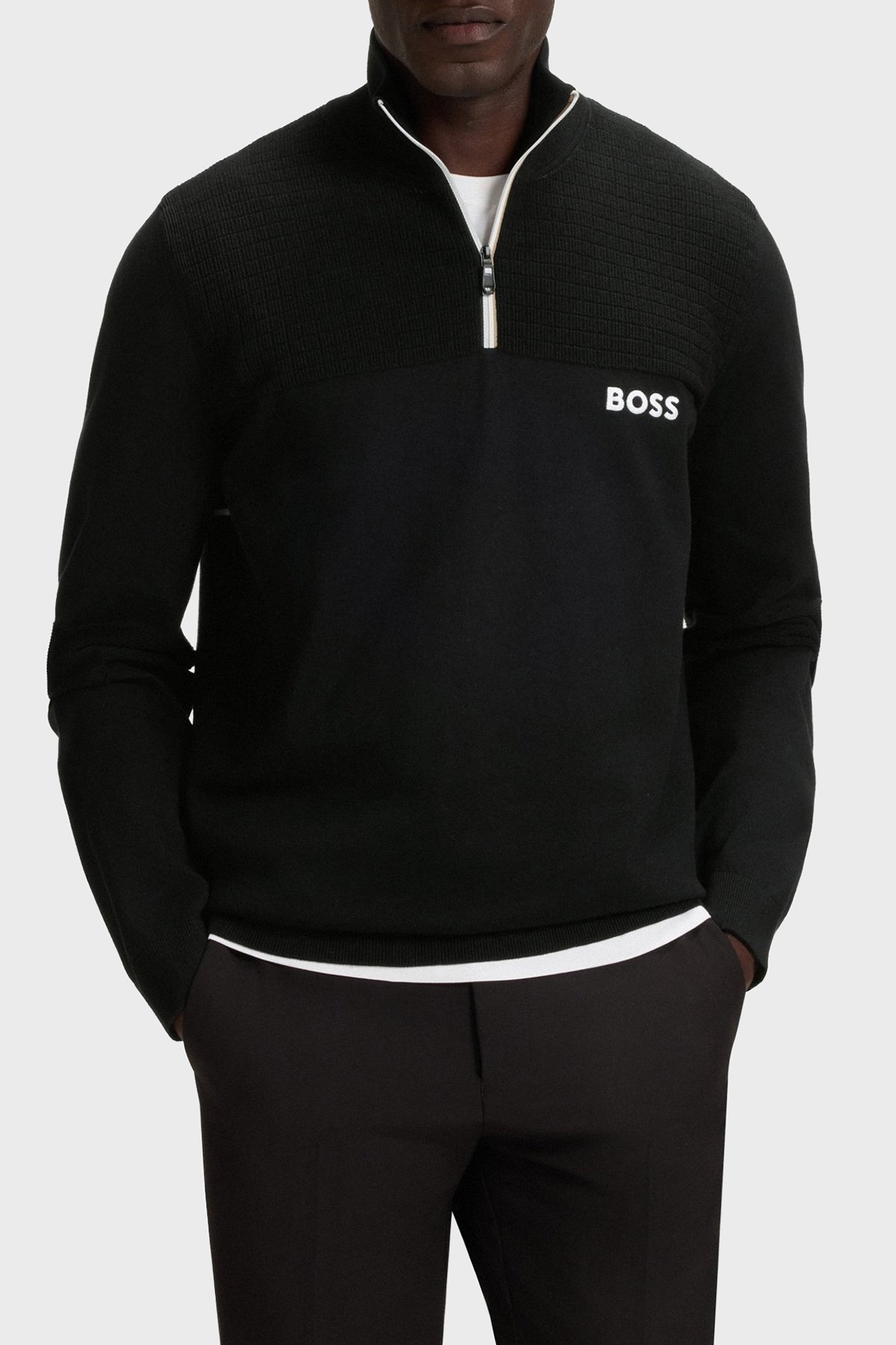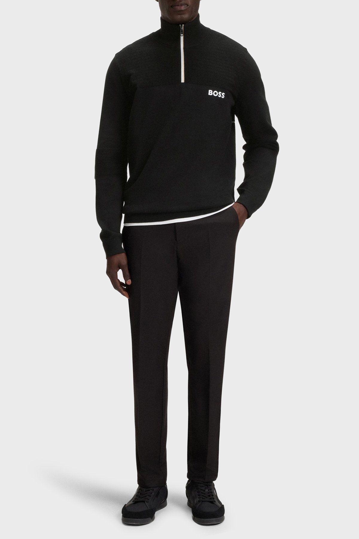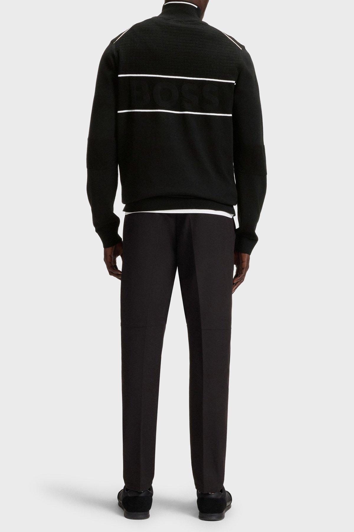 Şerit Detaylı Pamuklu Regular Fit Yarım Fermuarlı Dik Yaka Erkek Kazak 50541953 001 SİYAH