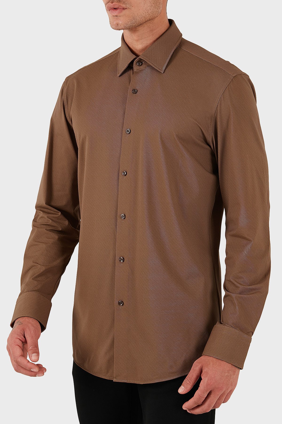 Slim Fit Streç Uzun Kollu Erkek Gömlek 50545428 217 KAHVE