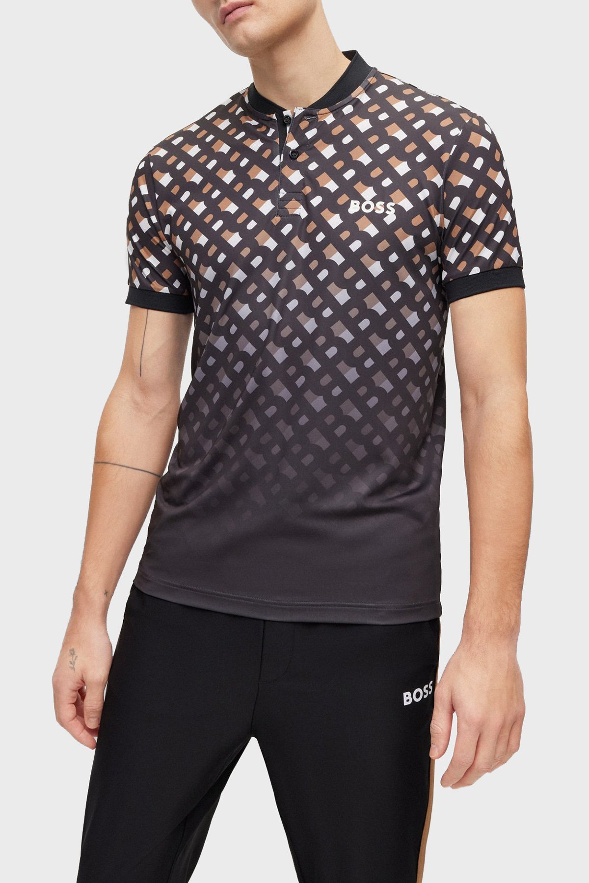 Streç Jarseden Monogram Baskılı Slim Fit Erkek Polo T Shirt 50487725 001 SİYAH