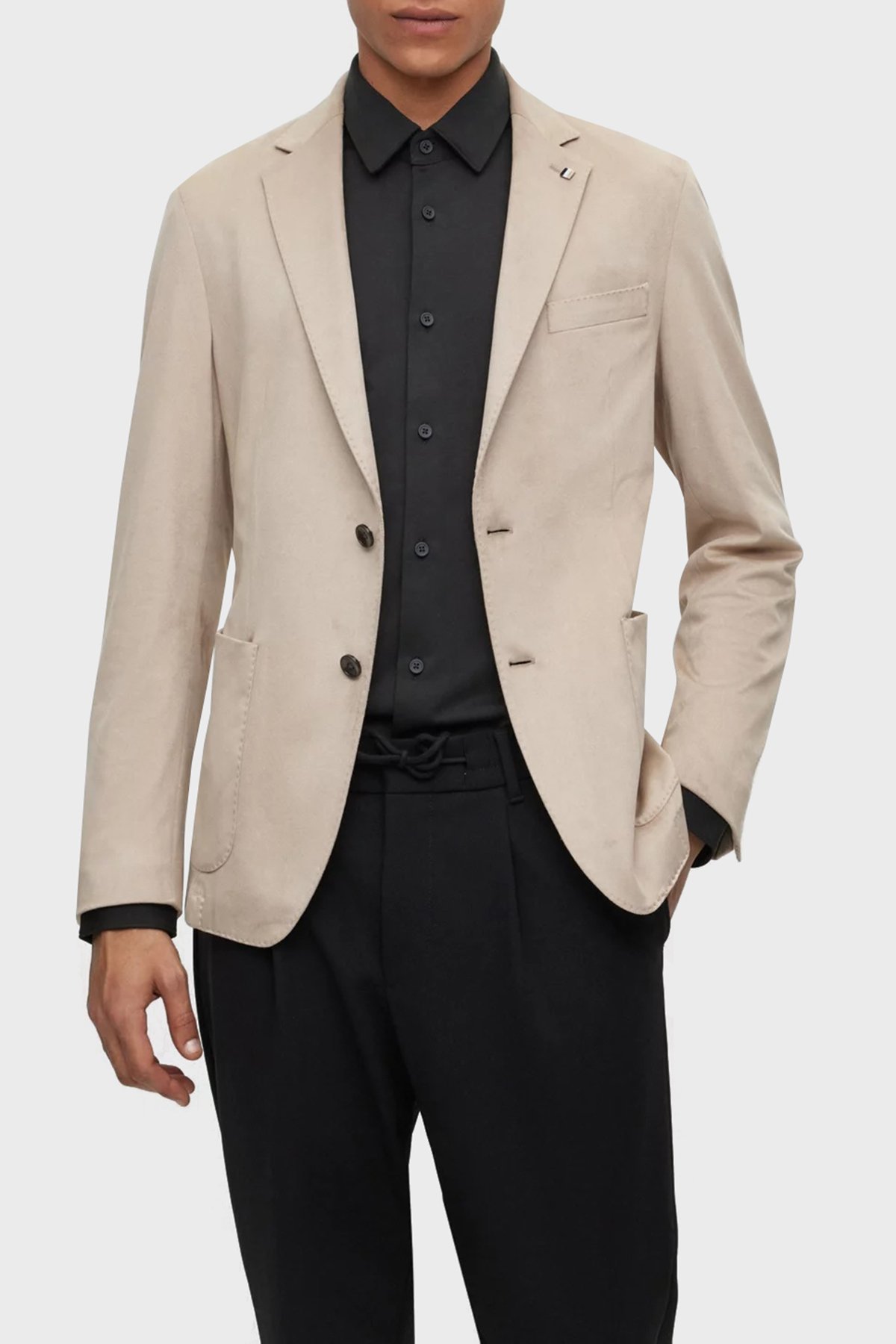 Streç Kumaştan Slim Fit Astarsız Blazer Erkek Ceket 50489419 271 BEJ