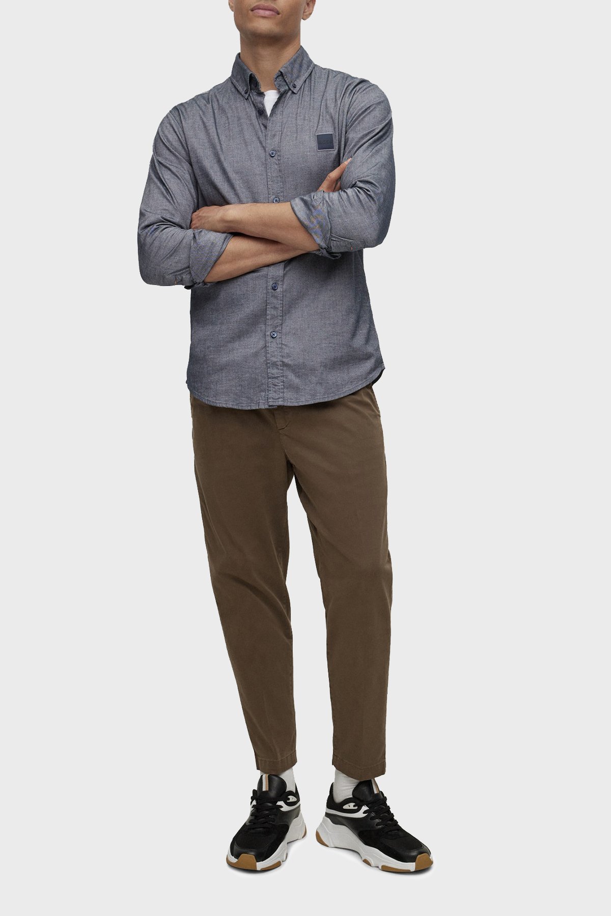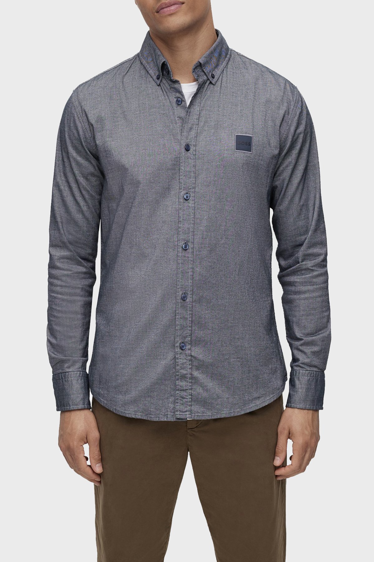 Streç Pamuklu Düğmeli Yaka Uzun Kol Slim Fit Erkek Gömlek 50467324 404 GRİ