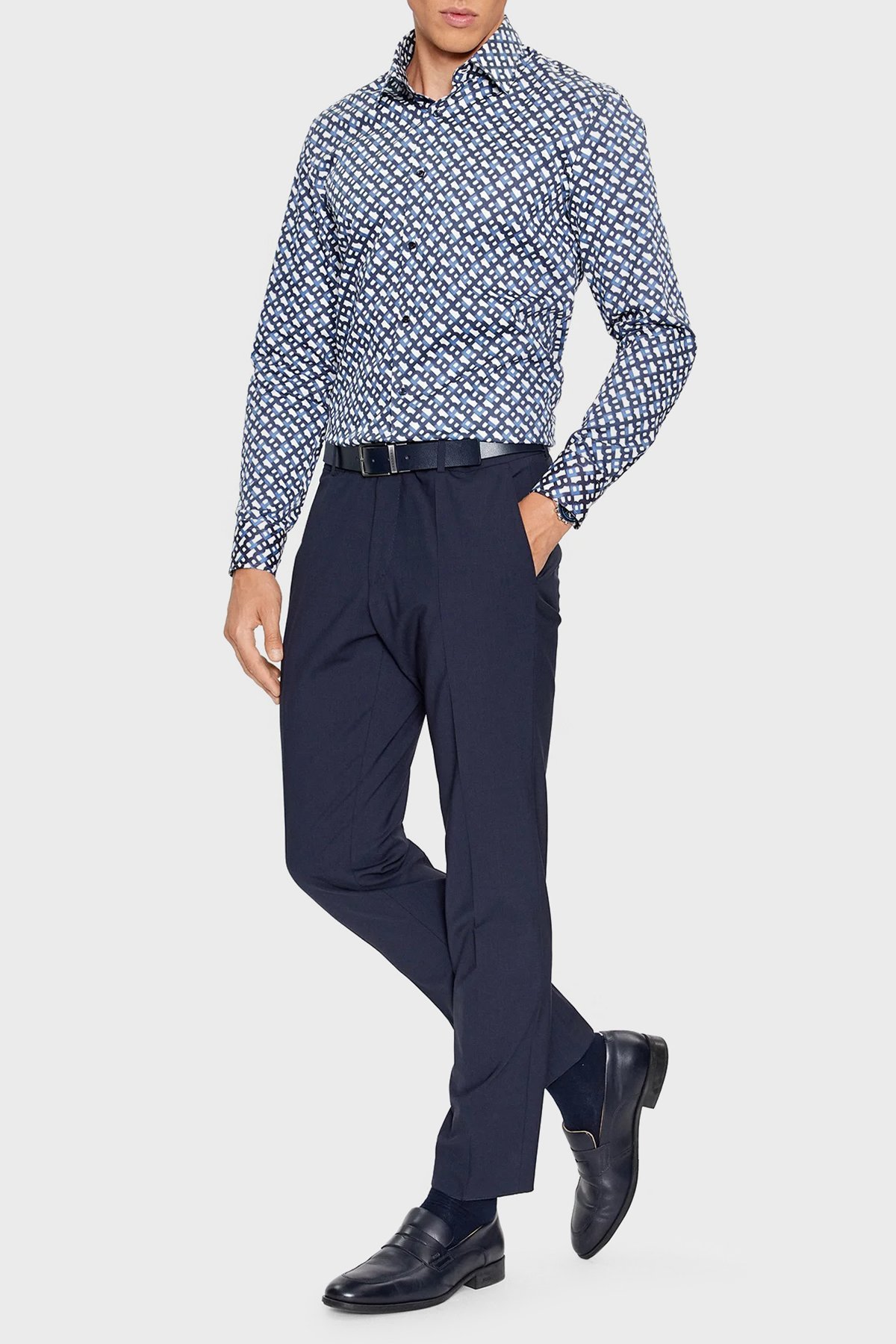 Tamamı Logogramlı % 100 Pamuk Slim Fit Erkek Gömlek 50502888 410 LACİVERT