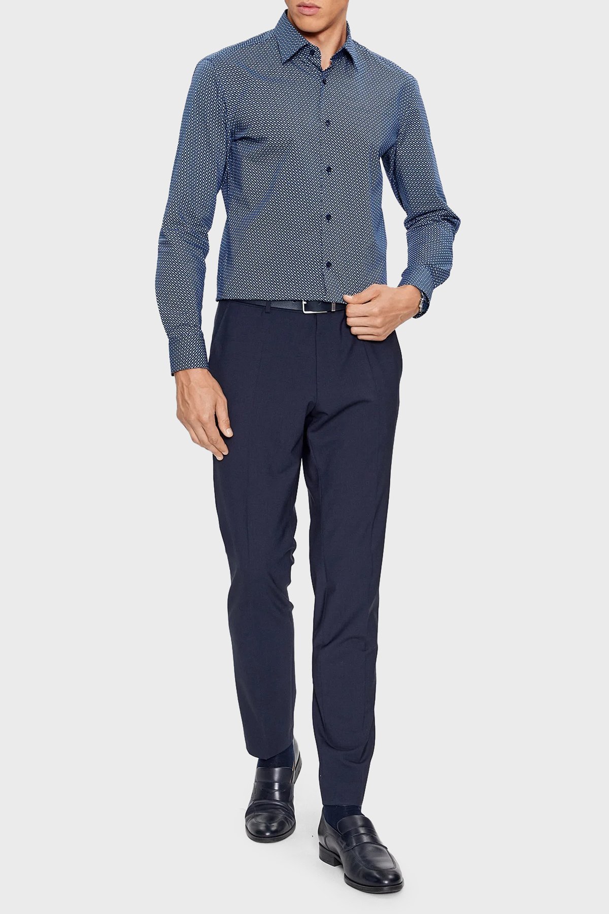 Tamamı Logolu Pamuklu Slim Fit Erkek Gömlek 50478620 410 LACİVERT