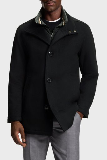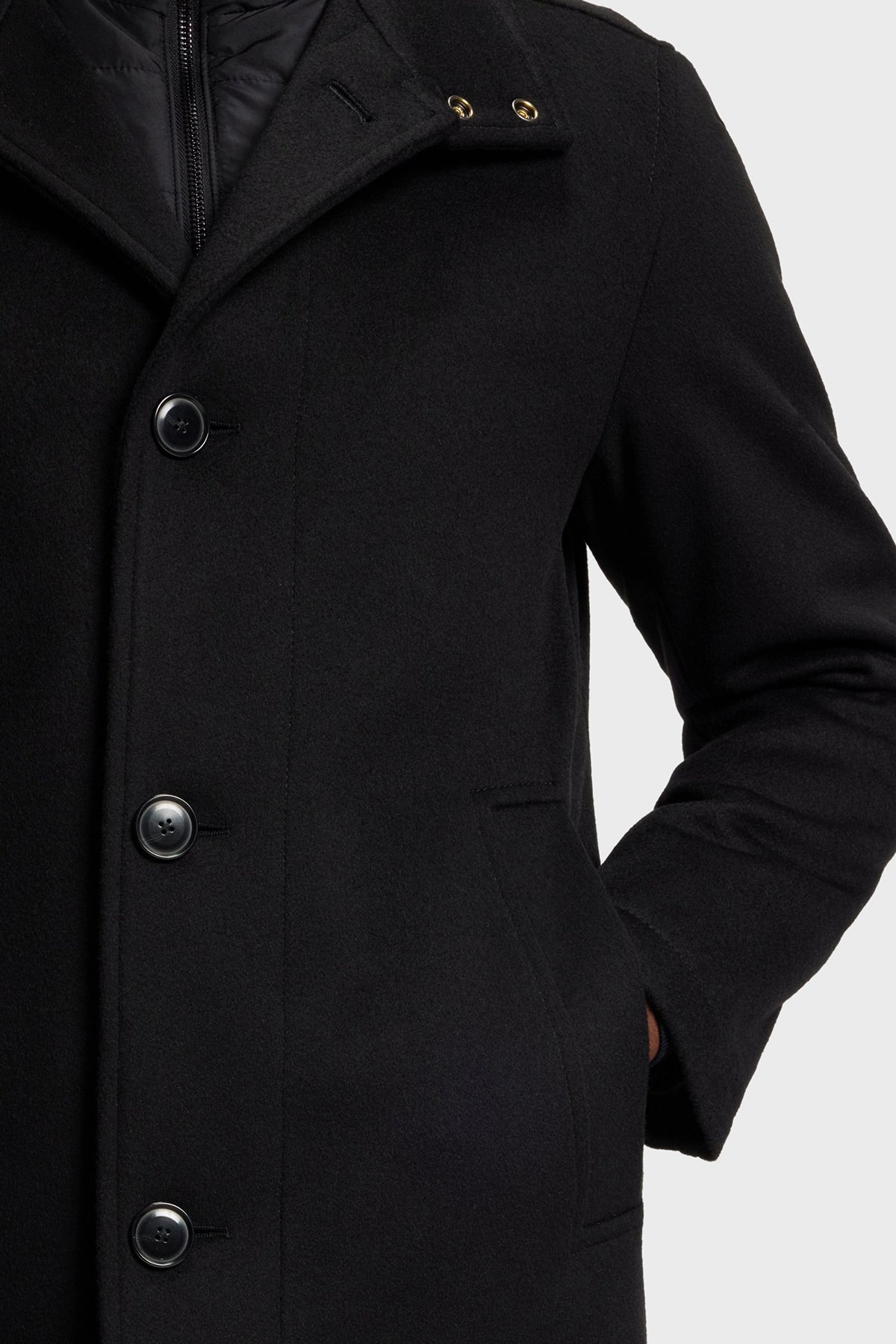 Yün ve Kaşmir Karışımlı Relaxed Fit Dik Yaka Erkek Kaban 50549193 001 SİYAH
