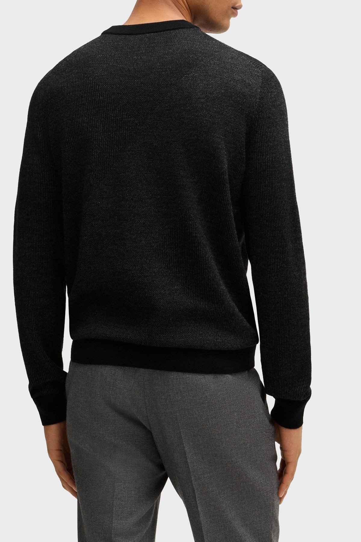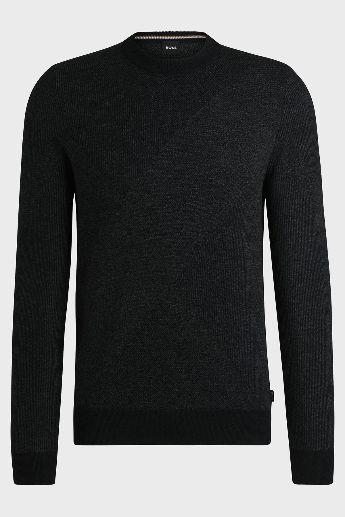 Yünlü Regular Fit Bisiklet Yaka Jakarlı Erkek Kazak 50526845 001 SİYAH