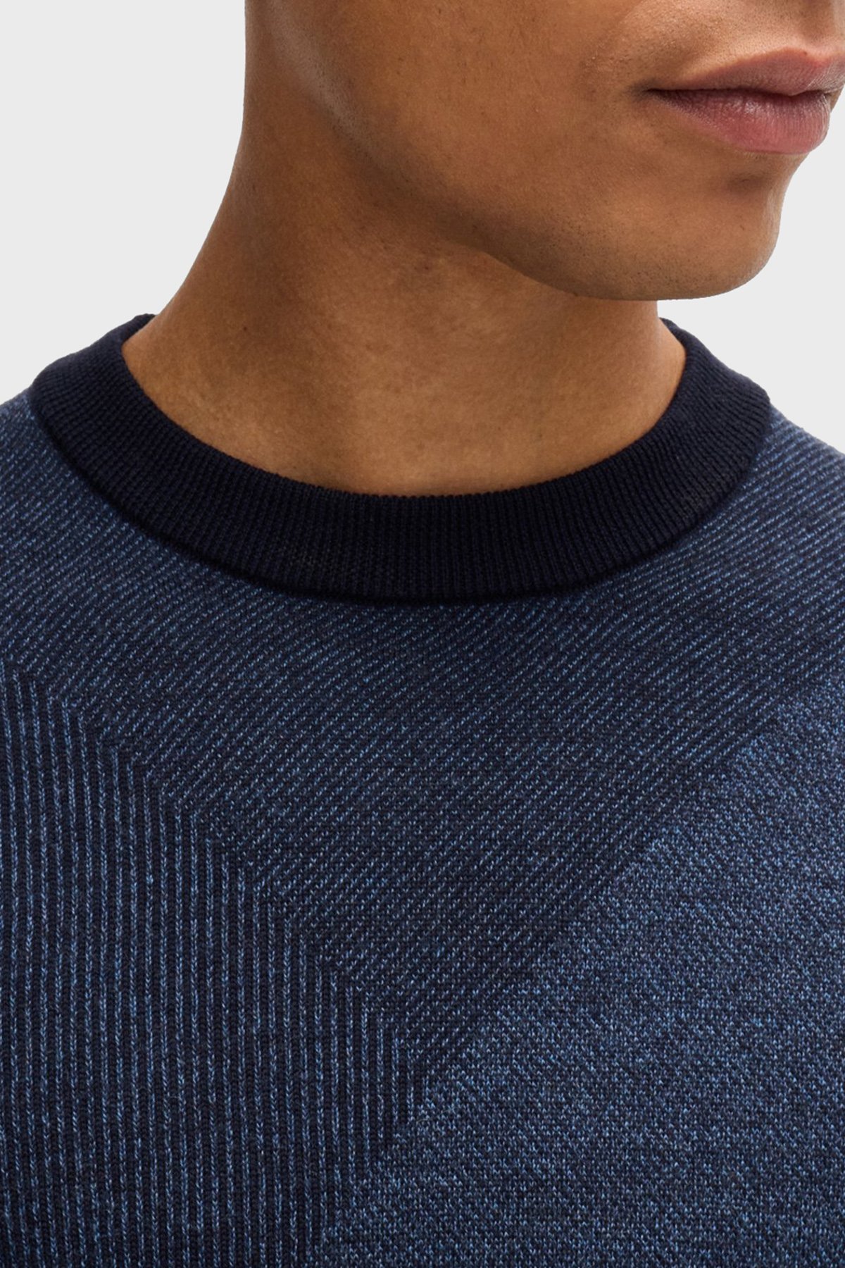 Yünlü Regular Fit Bisiklet Yaka Jakarlı Erkek Kazak 50526845 404 LACİVERT