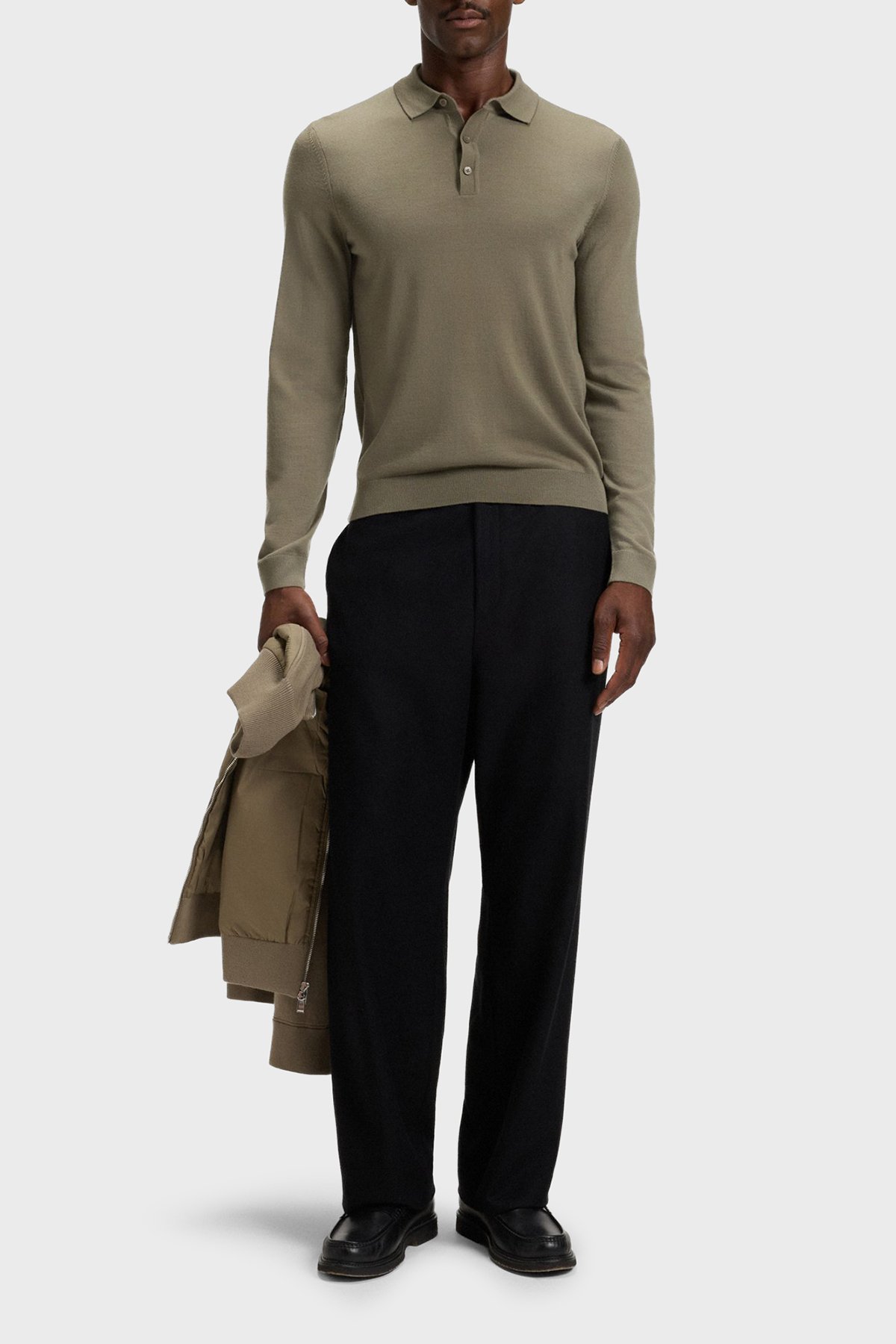 Yünlü Regular Fit Düğmeli Erkek Polo Yaka Kazak 50476357 245 HAKİ