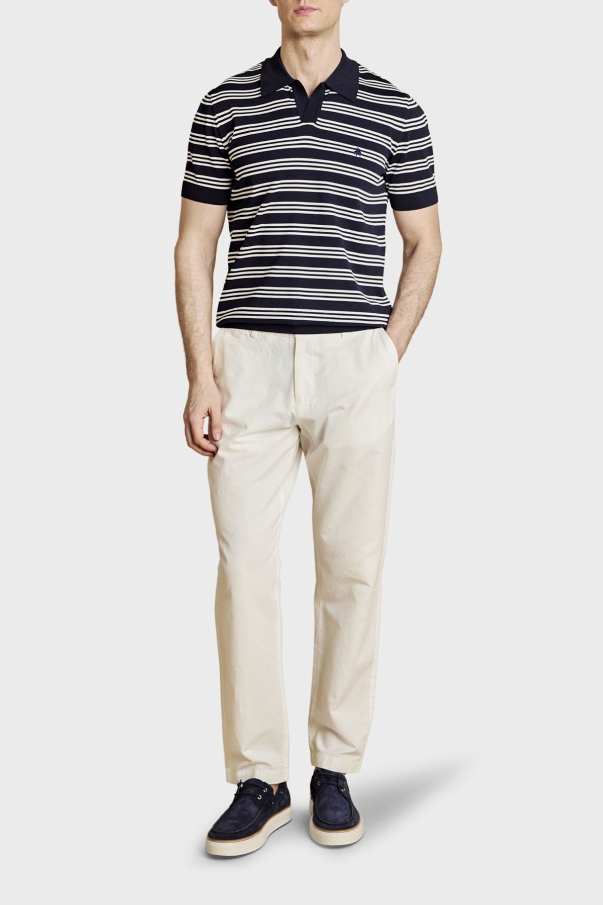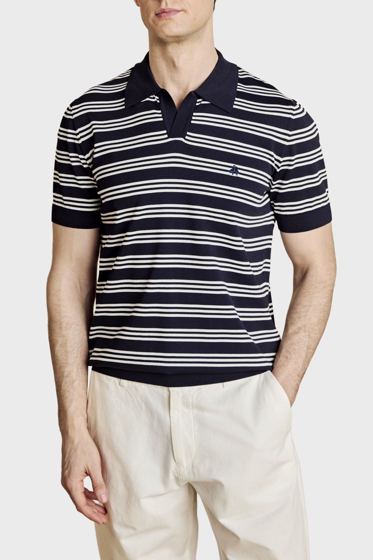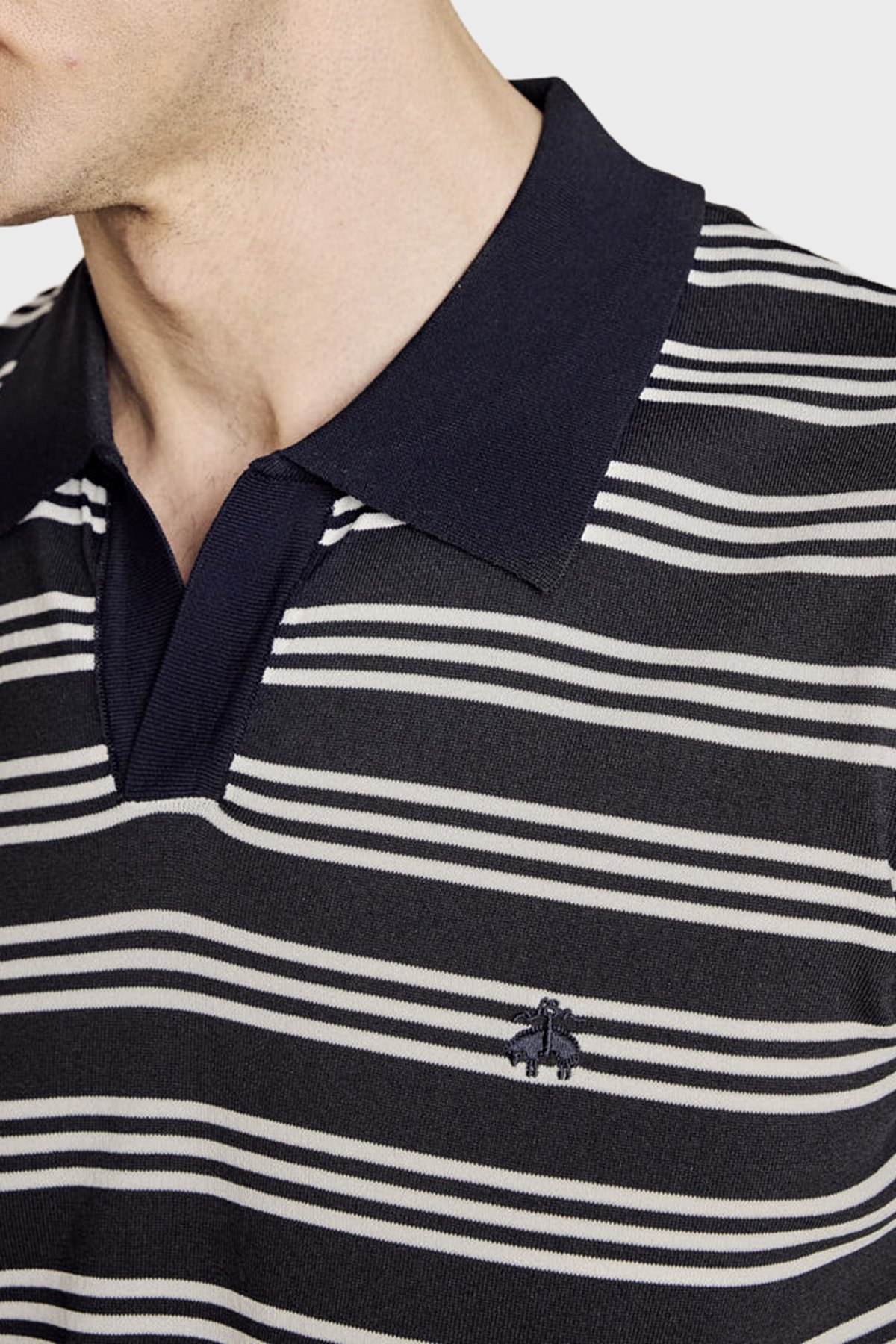 Düğmesiz Çizgili Rayon Kısa Kollu Erkek Polo Yaka Kazak BBSS26MKL013388 Lacivert Kırık Beyaz