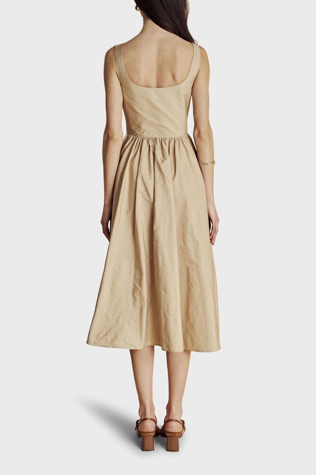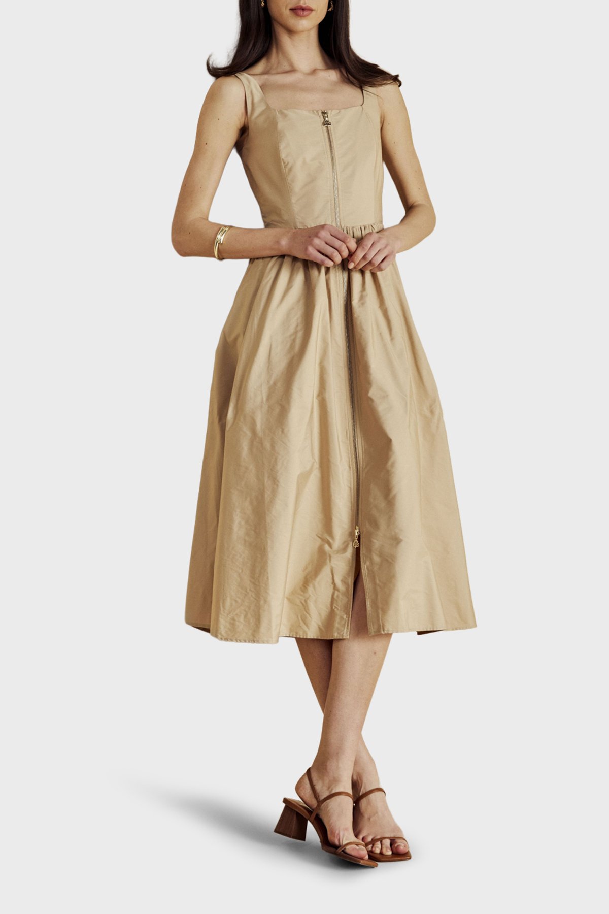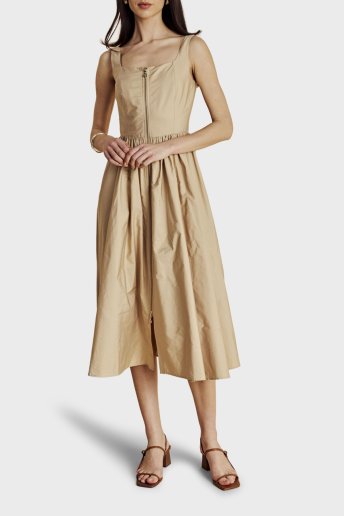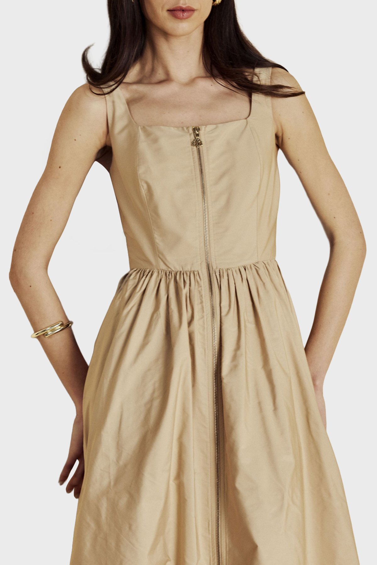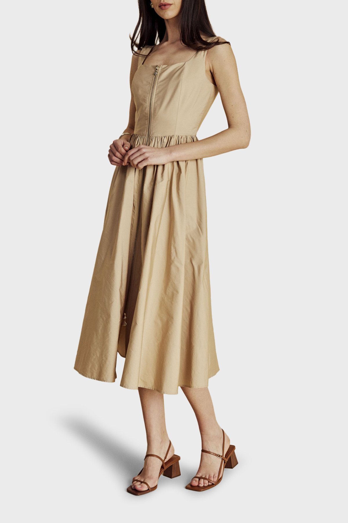 Metal Fermuar Detaylı Kare Yaka Midi Boy Kadın Elbise BBSS26FDR004142 Bej