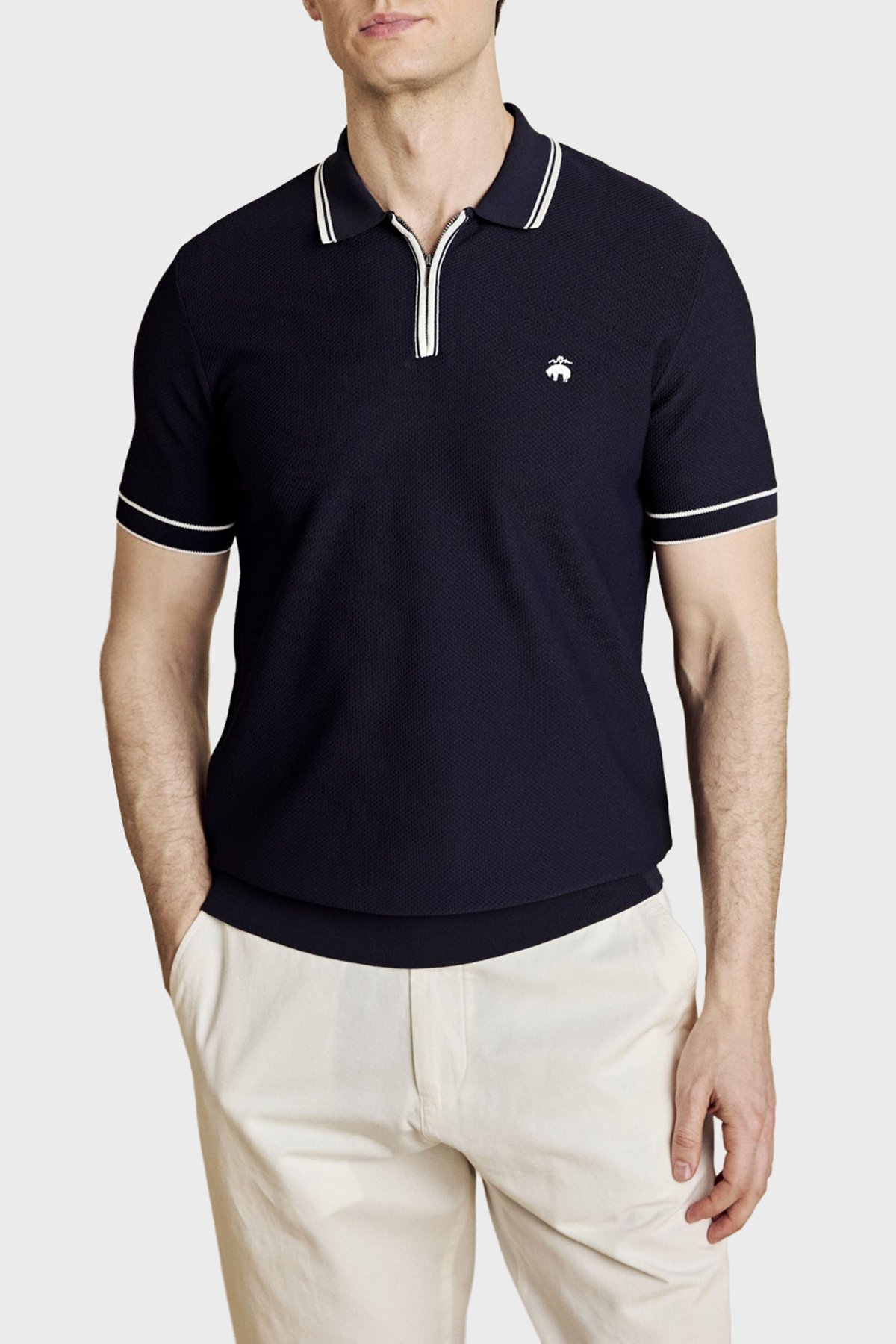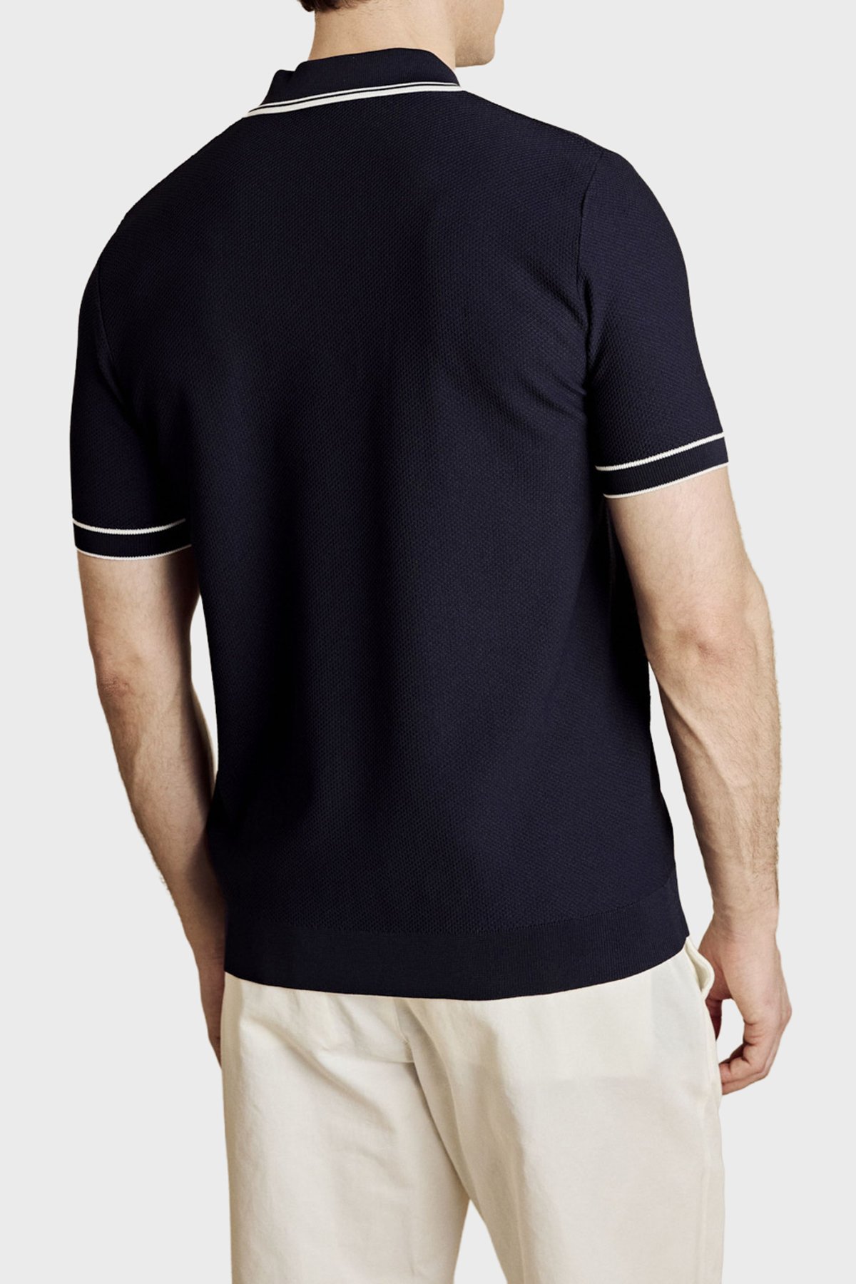 Petek Örgü Rayon Kısa Kollu Fermuarlı Erkek Polo Yaka Kazak BBSS26MKL007388 Lacivert Kırık Beyaz