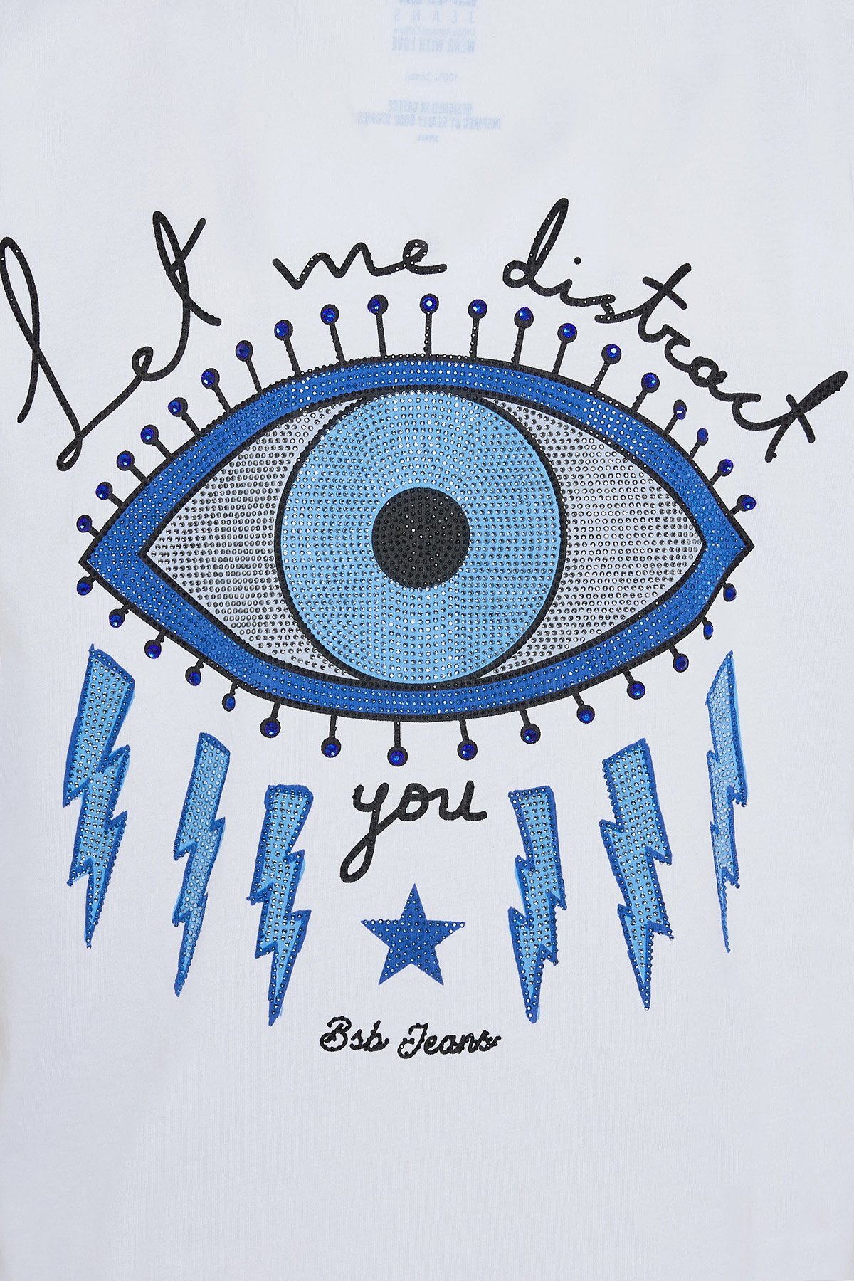 % 100 Pamuk Regular Fit Bisiklet Yaka Baskılı Bayan T Shirt 053-210006.002 BEYAZ