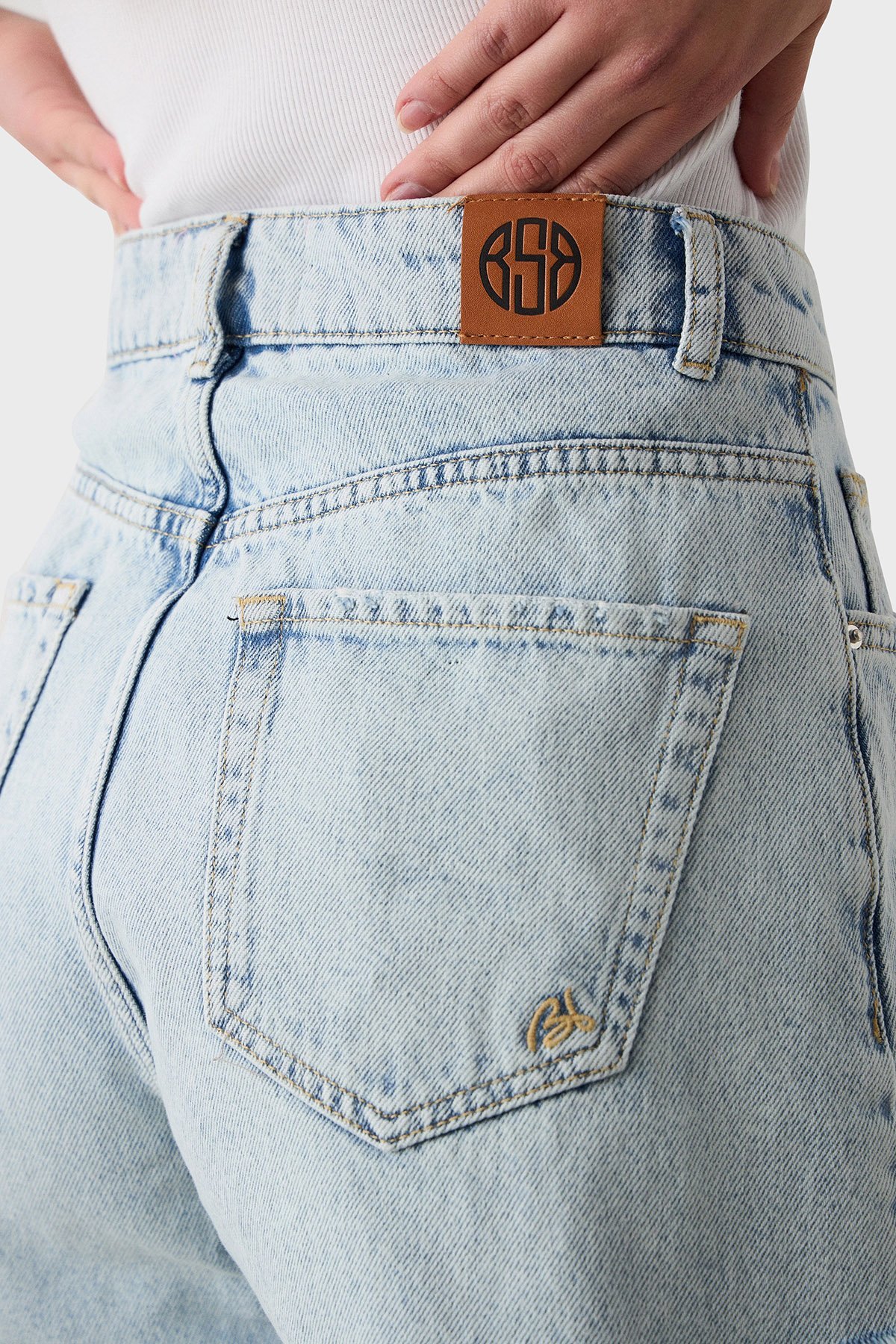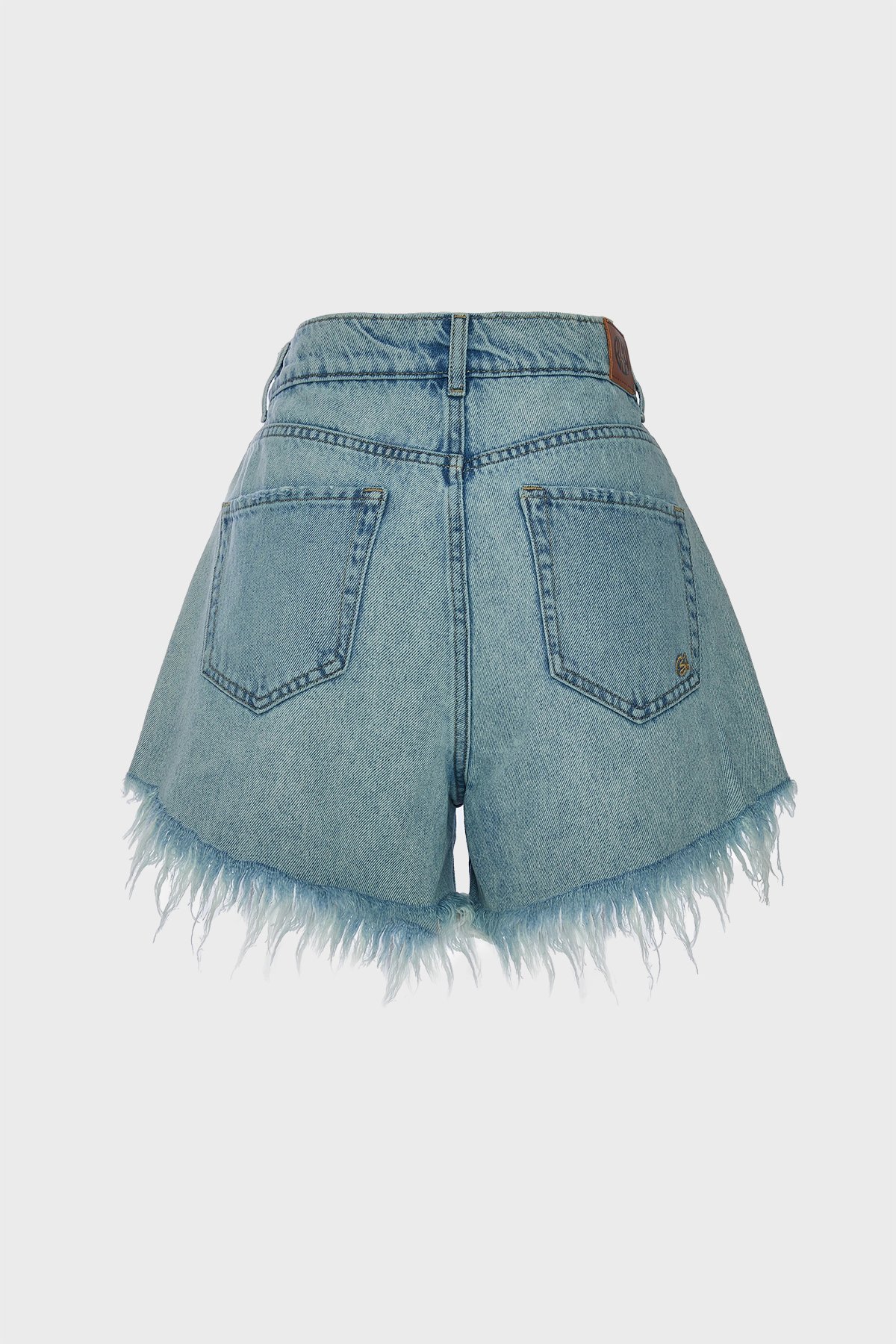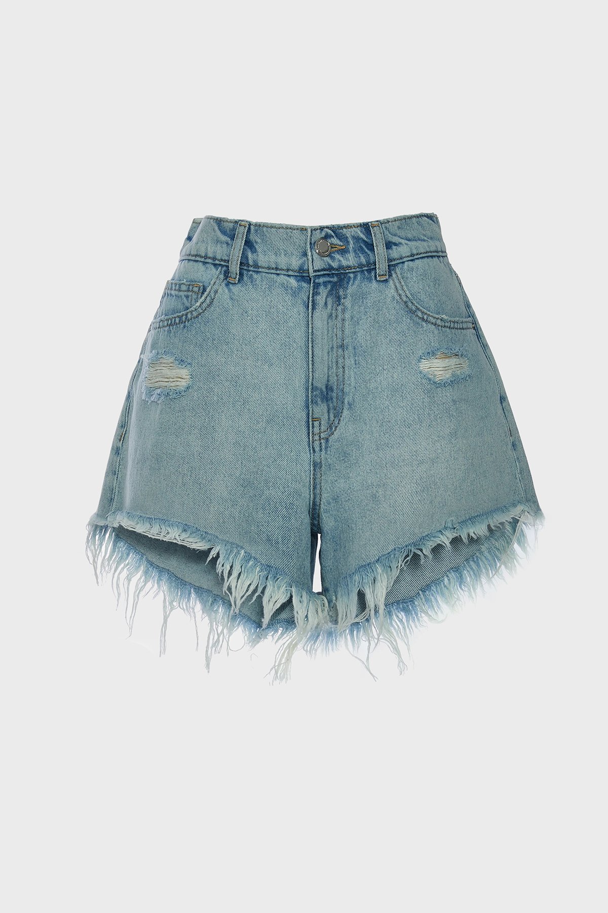% 100 Pamuk Yırtıklı Regular Fit Yüksek Bel Mini Kot Bayan Short 053-241903.971 MAVİ