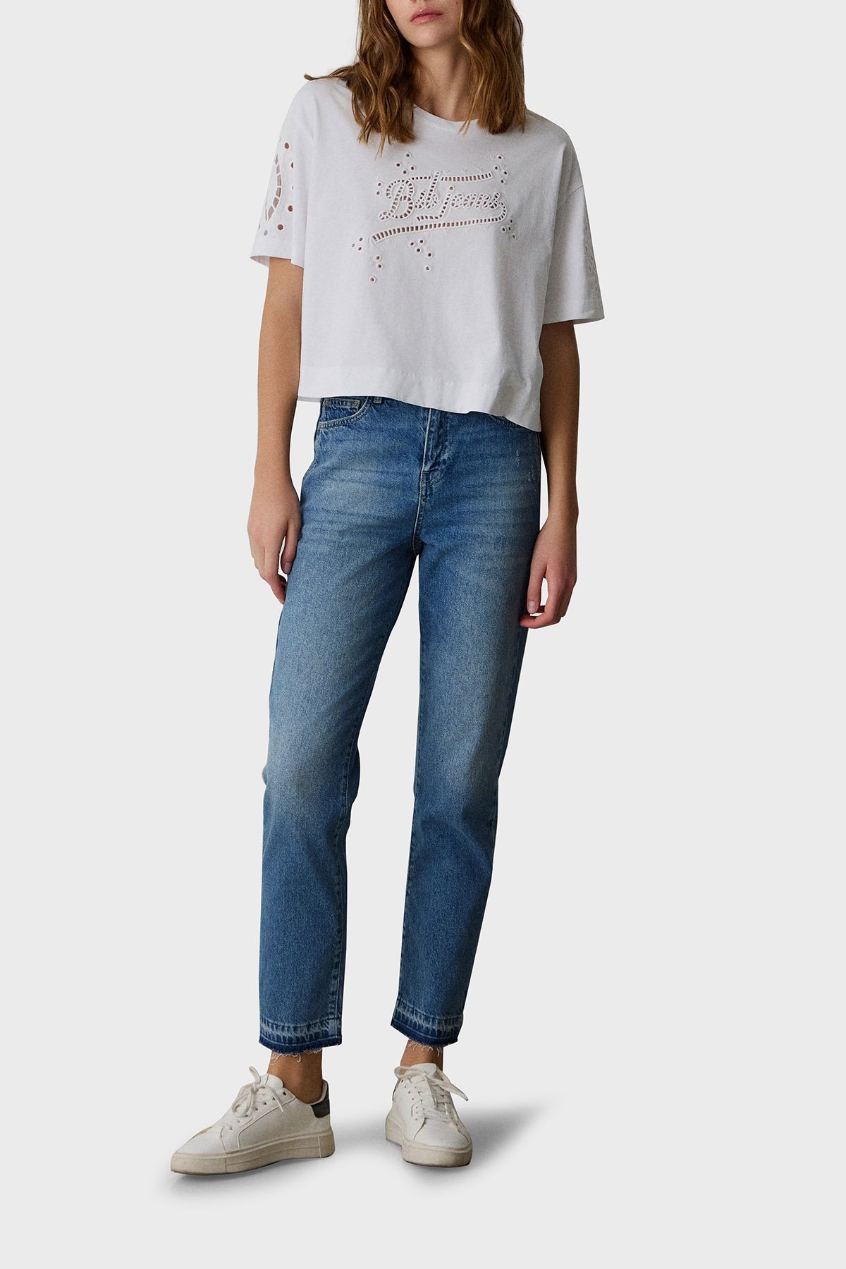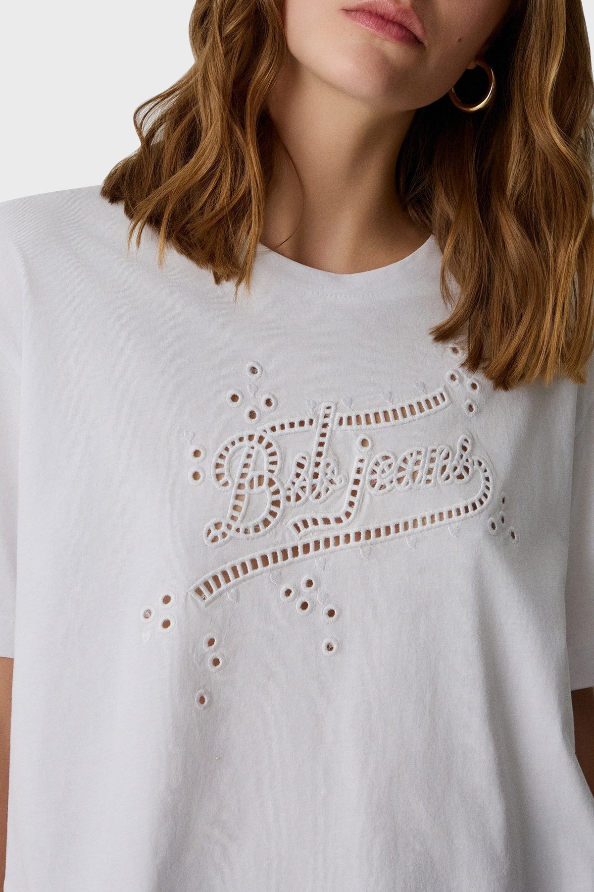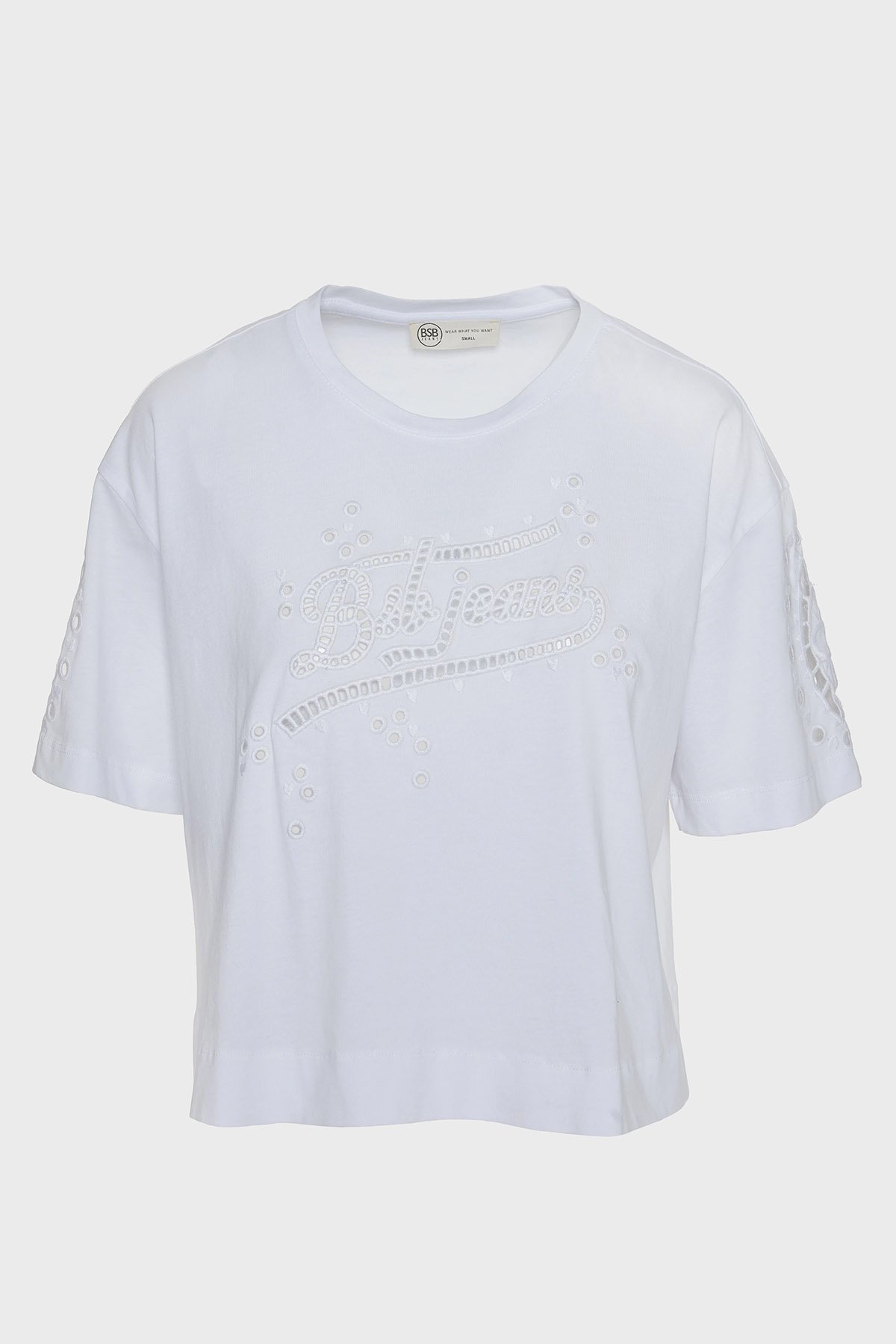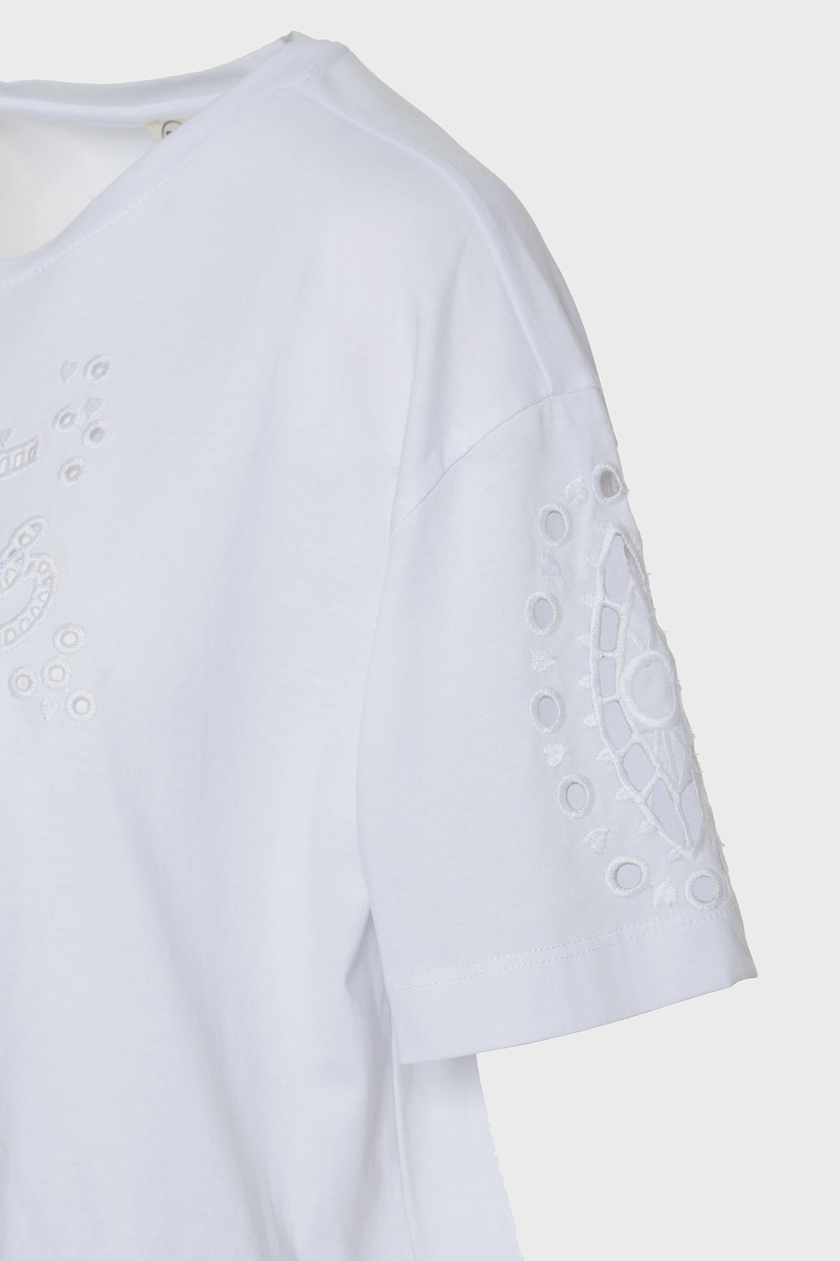 Ajurlu % 100 Pamuk Regular Fit Bisiklet Yaka Bayan Bluz 053-210083.002 BEYAZ