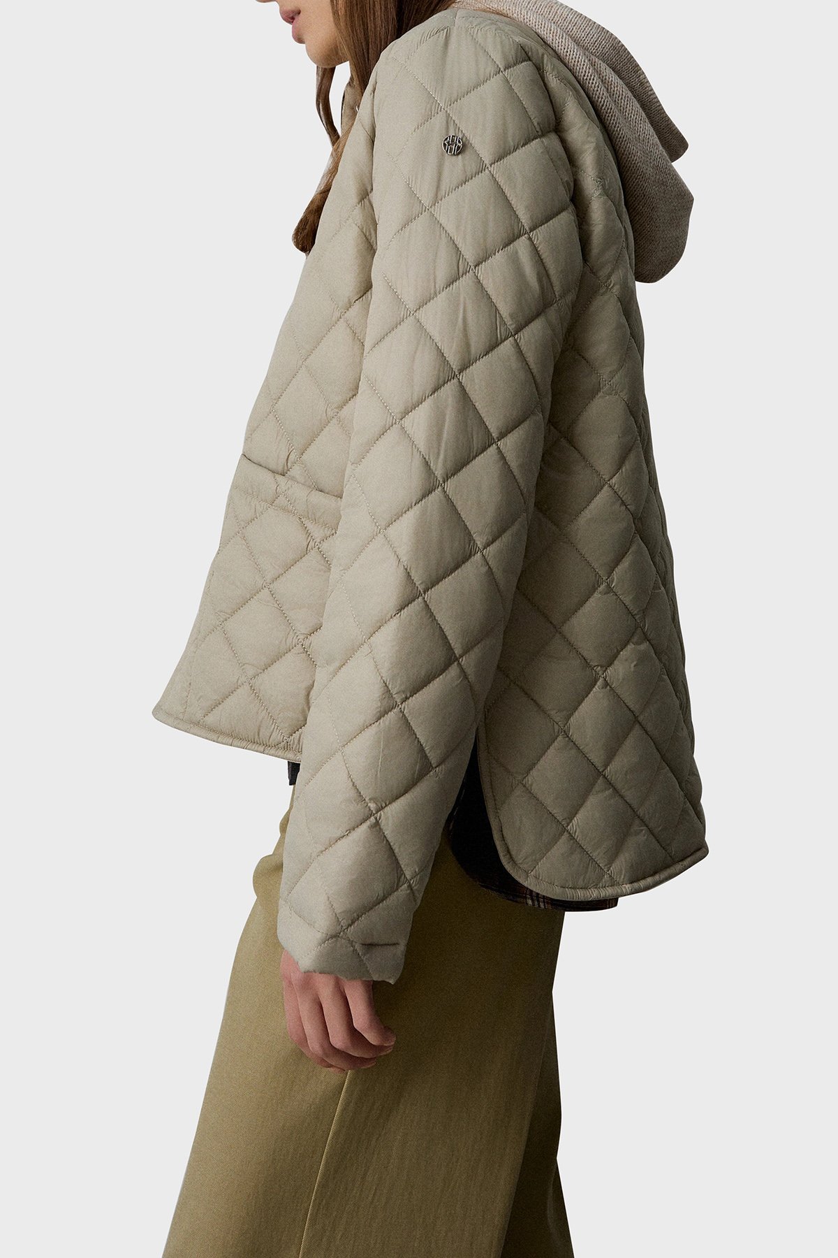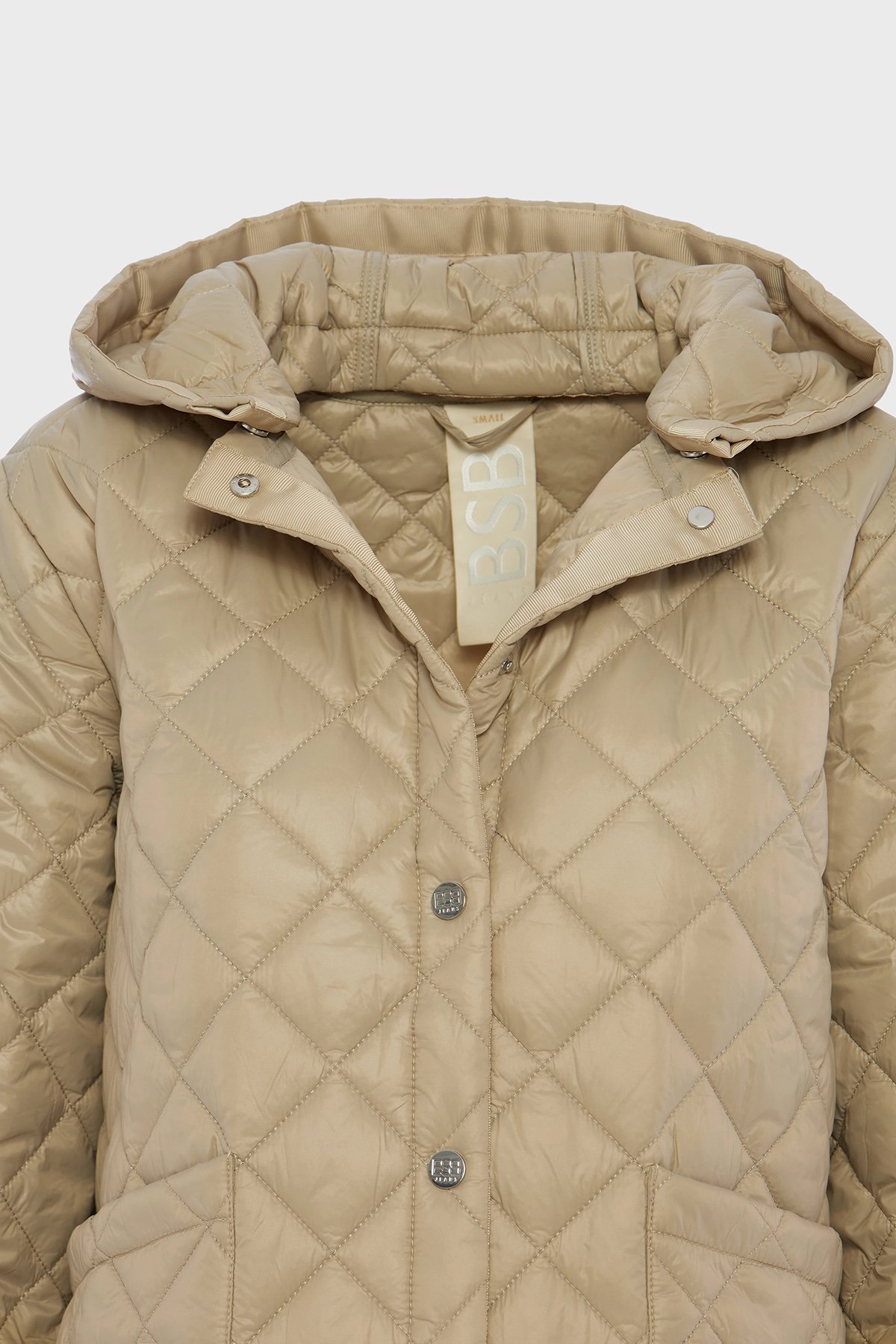 Kapitoneli Çıkarılabilir Kapüşonlu Regular Fit Çıtçıt Düğmeli Bayan Ceket 053-217002.131 BEJ