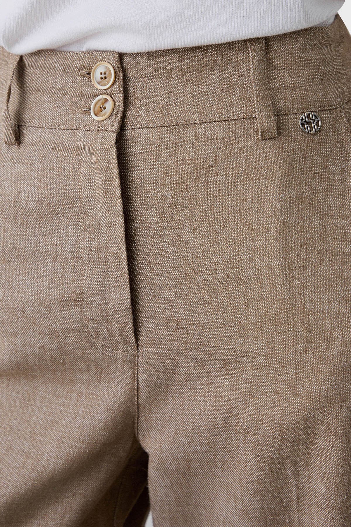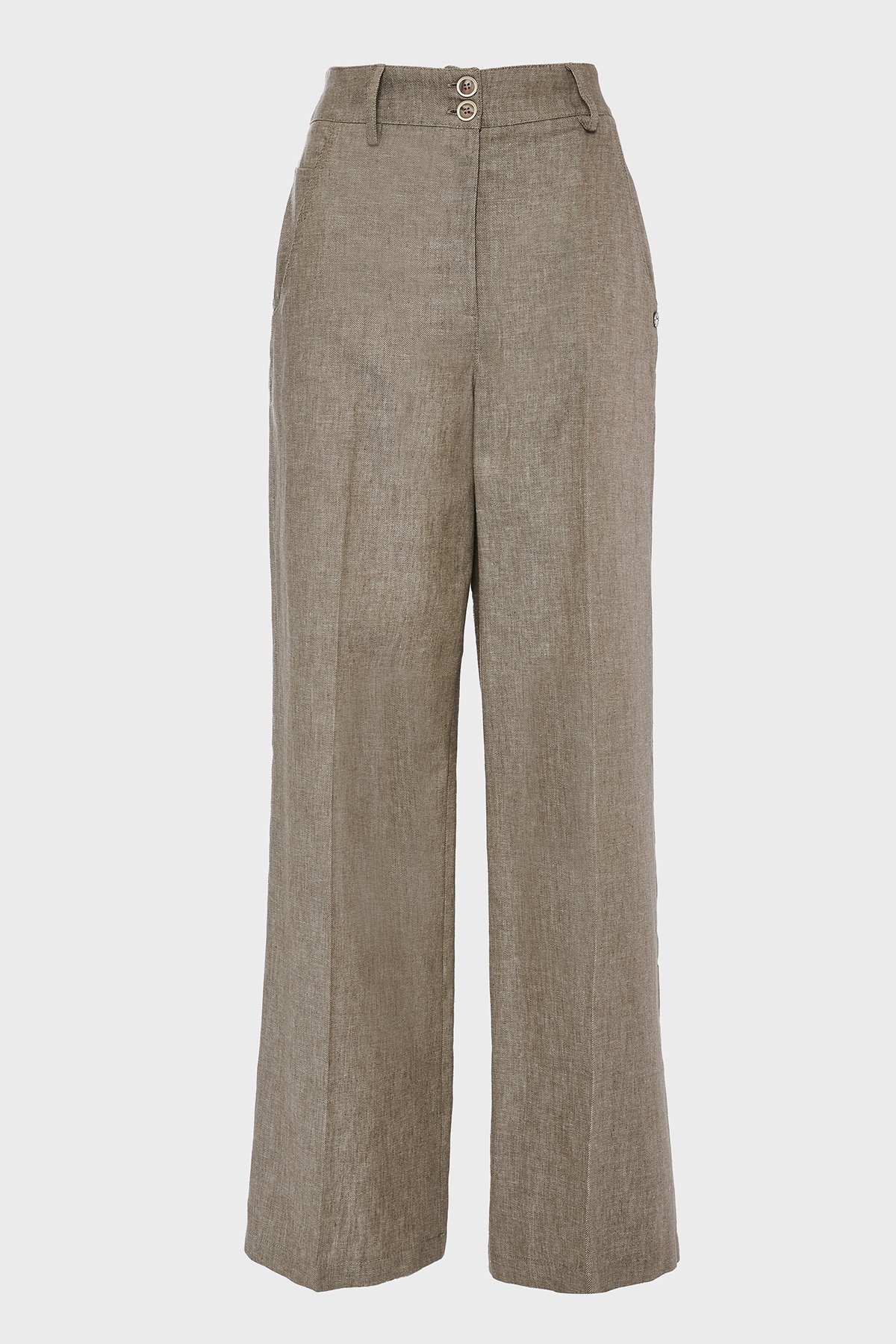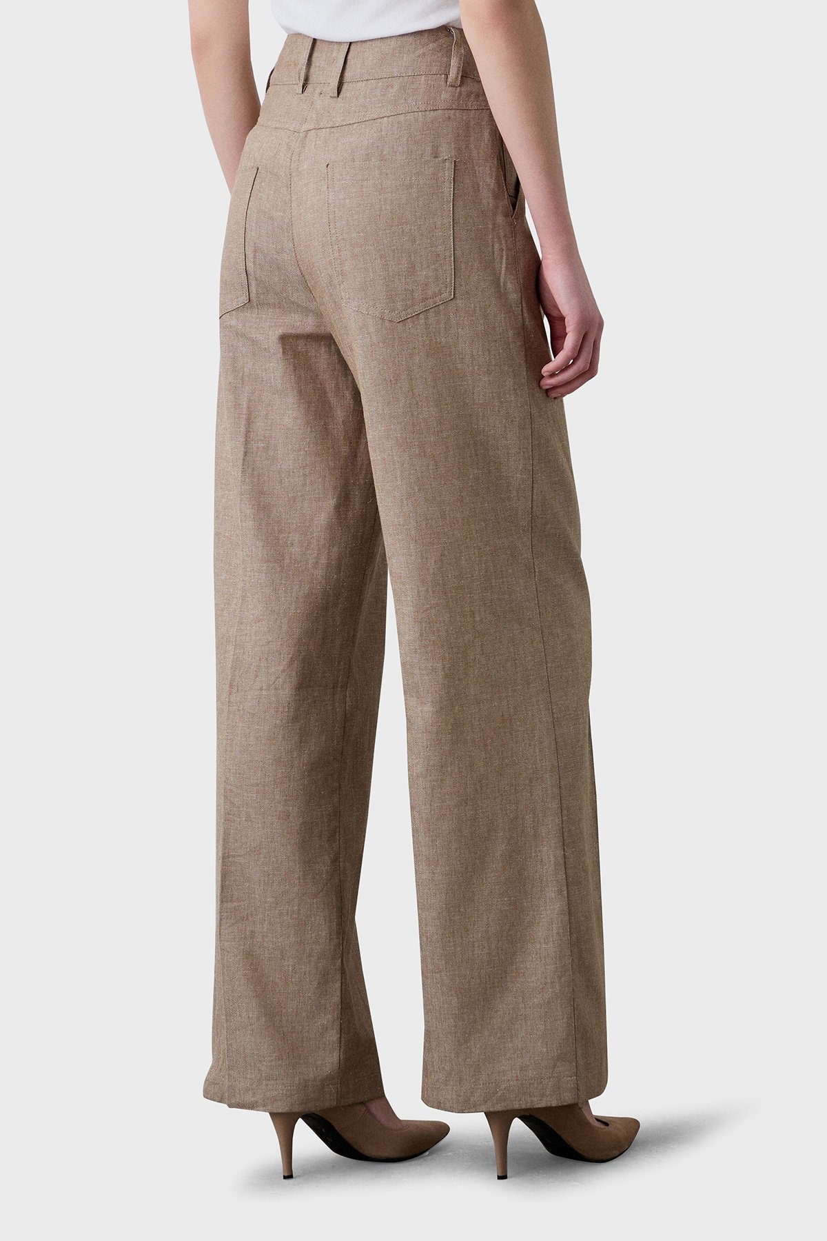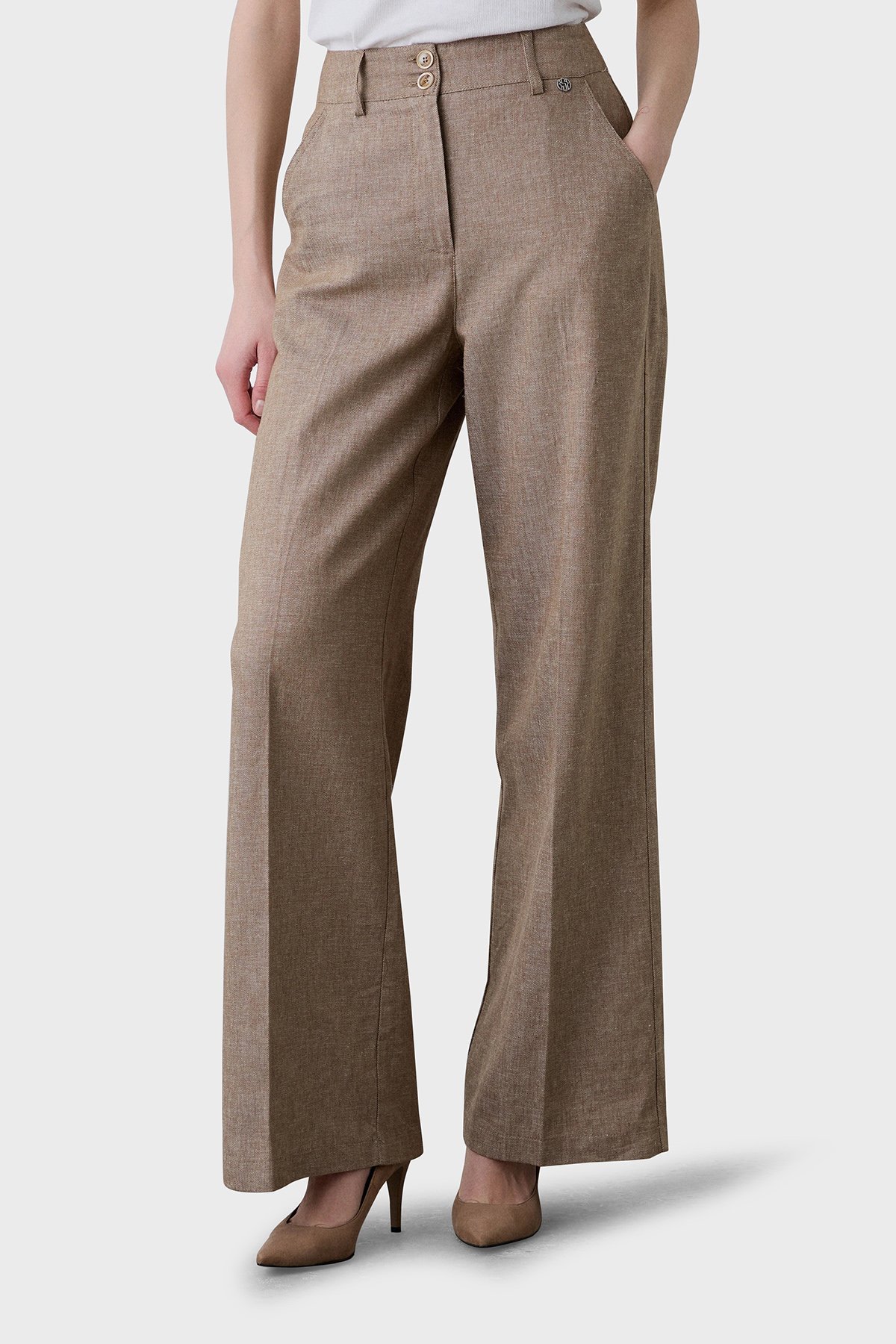 Keten ve Pamuk Karışımlı Regular Fit Yüksek Bel Geniş Paça Bayan Pantolon 053-212013.131 BEJ