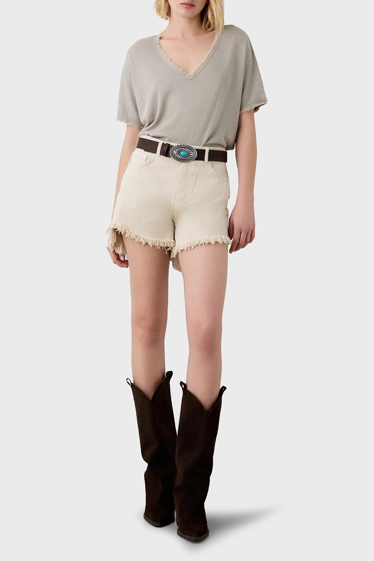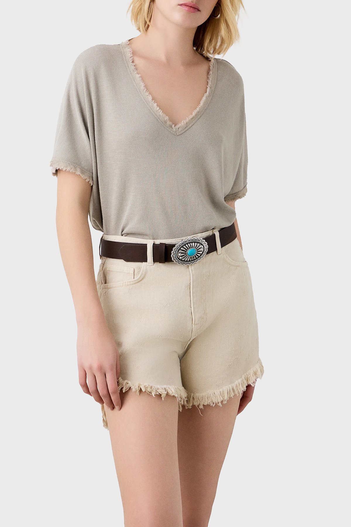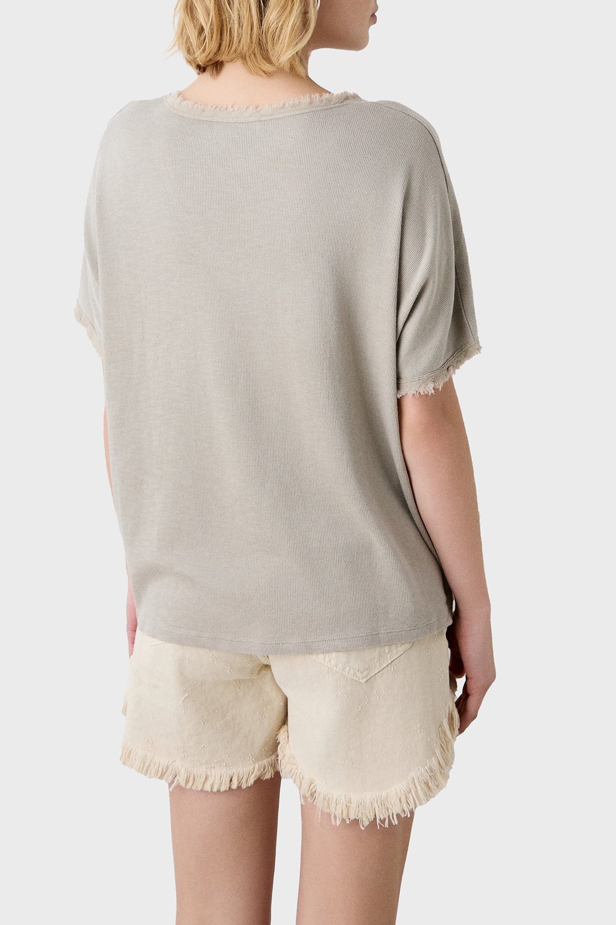 Pamuk Karışımlı Oversize V Yaka Bayan Bluz 053-210132.131 BEJ