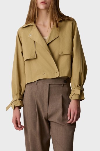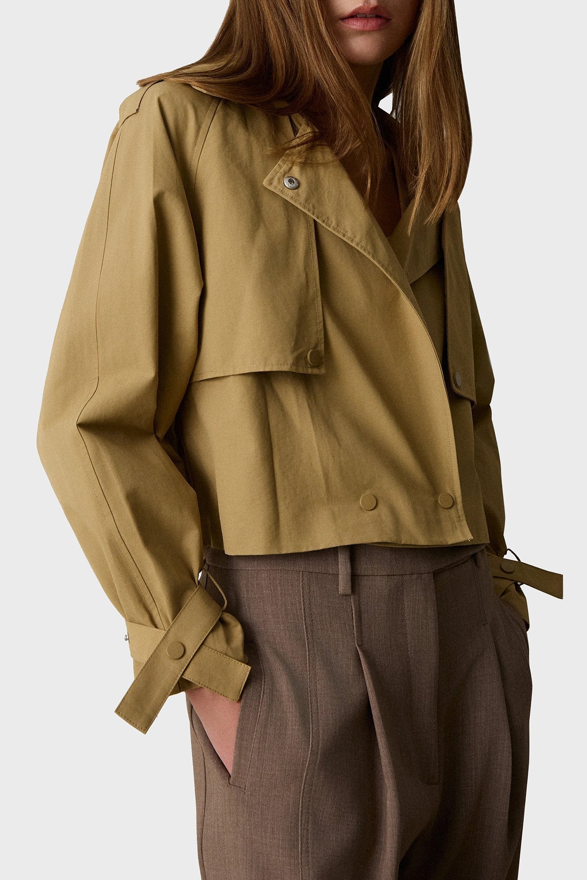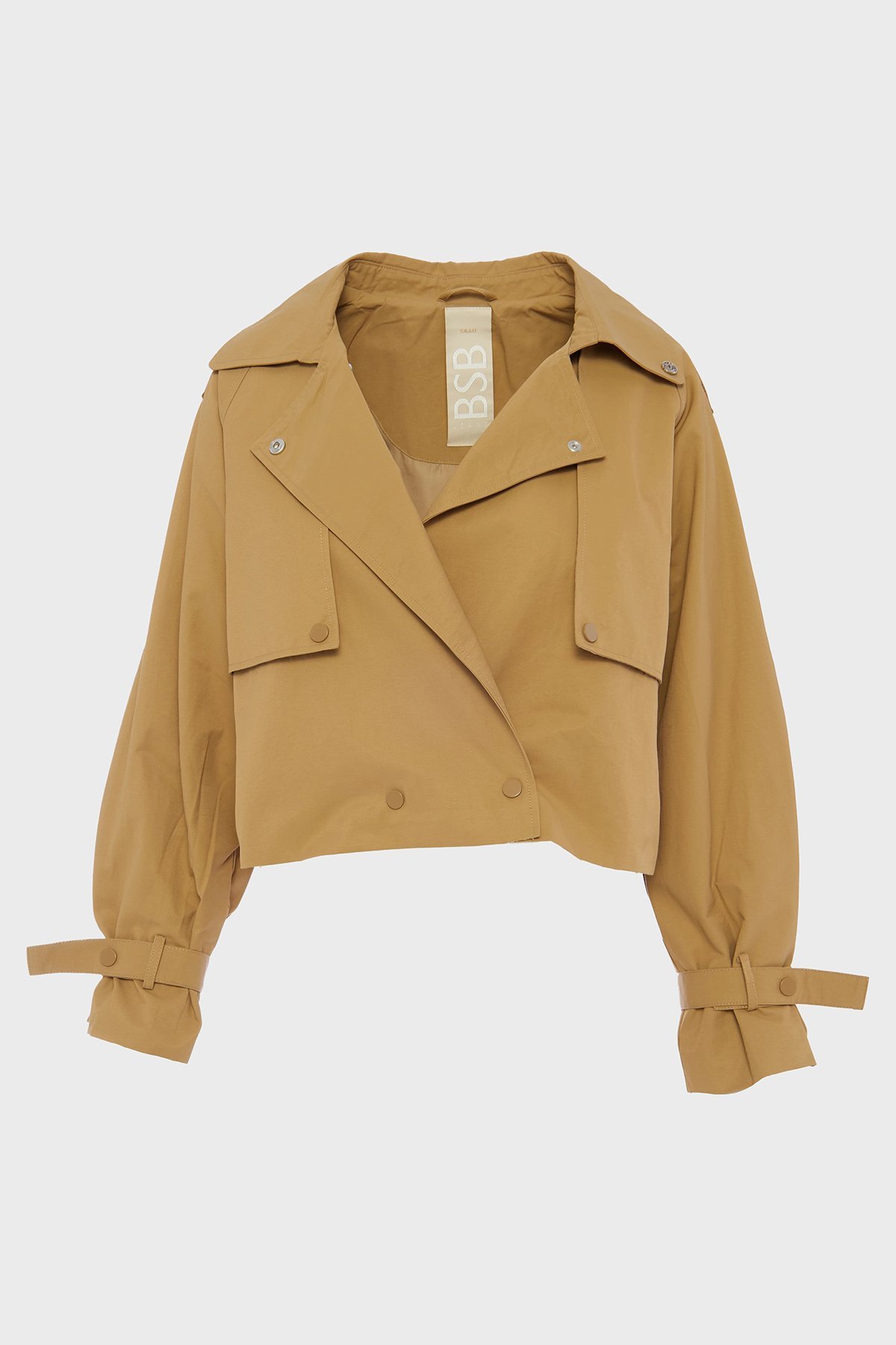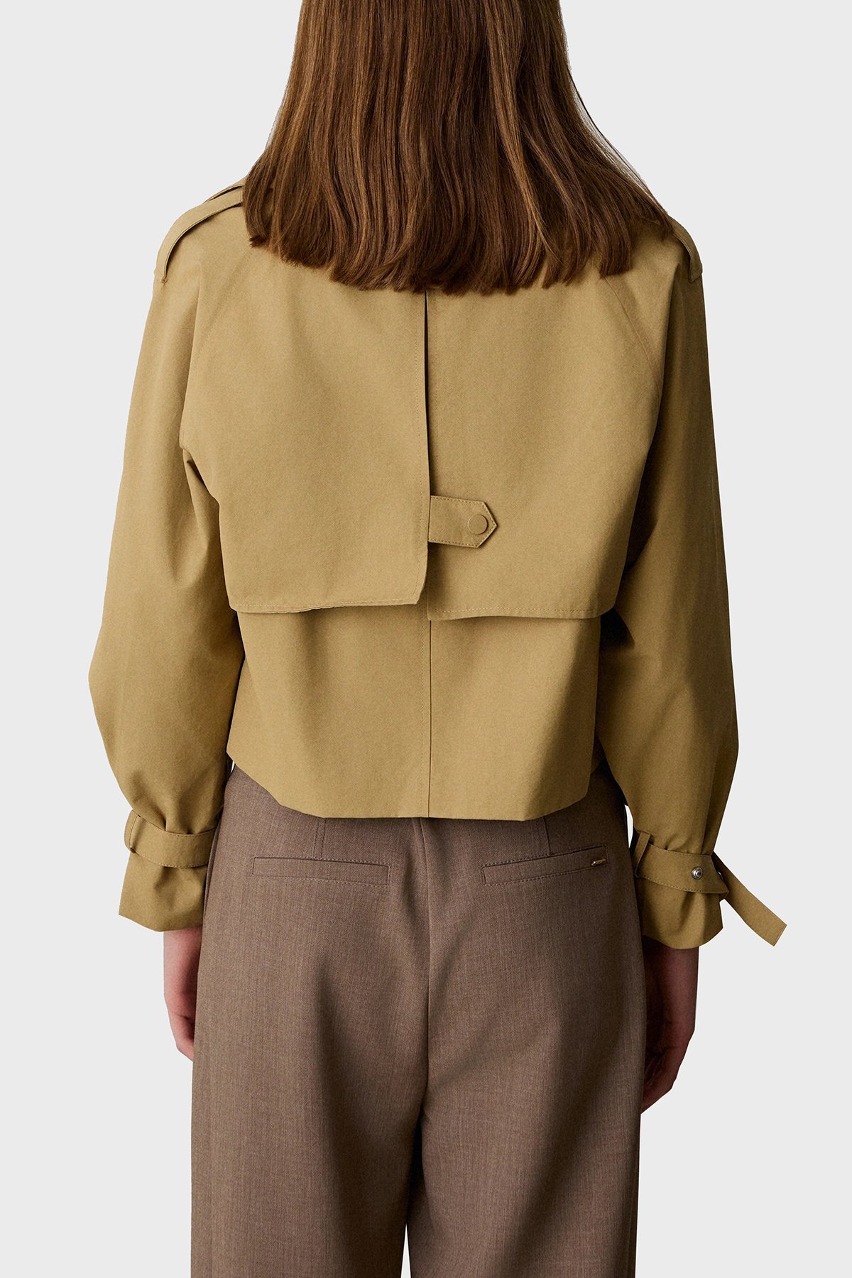 Pamuklu Regular Fit Çıtçıt Düğmeli Apaş Yaka Kısa Bayan Trençkot 053-257001.010 BEJ