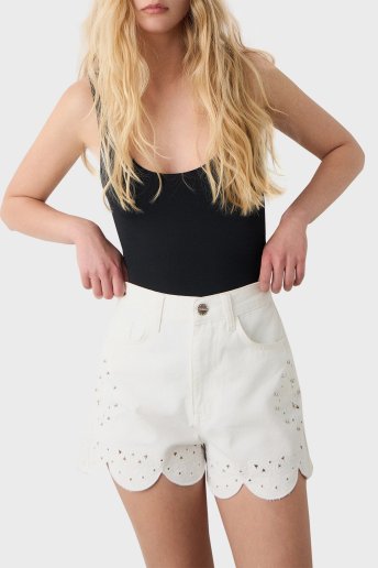 Pamuklu Taş Detaylı Regular Fit Yüksek Bel Mini Kot Bayan Short 053-241803.002 BEYAZ