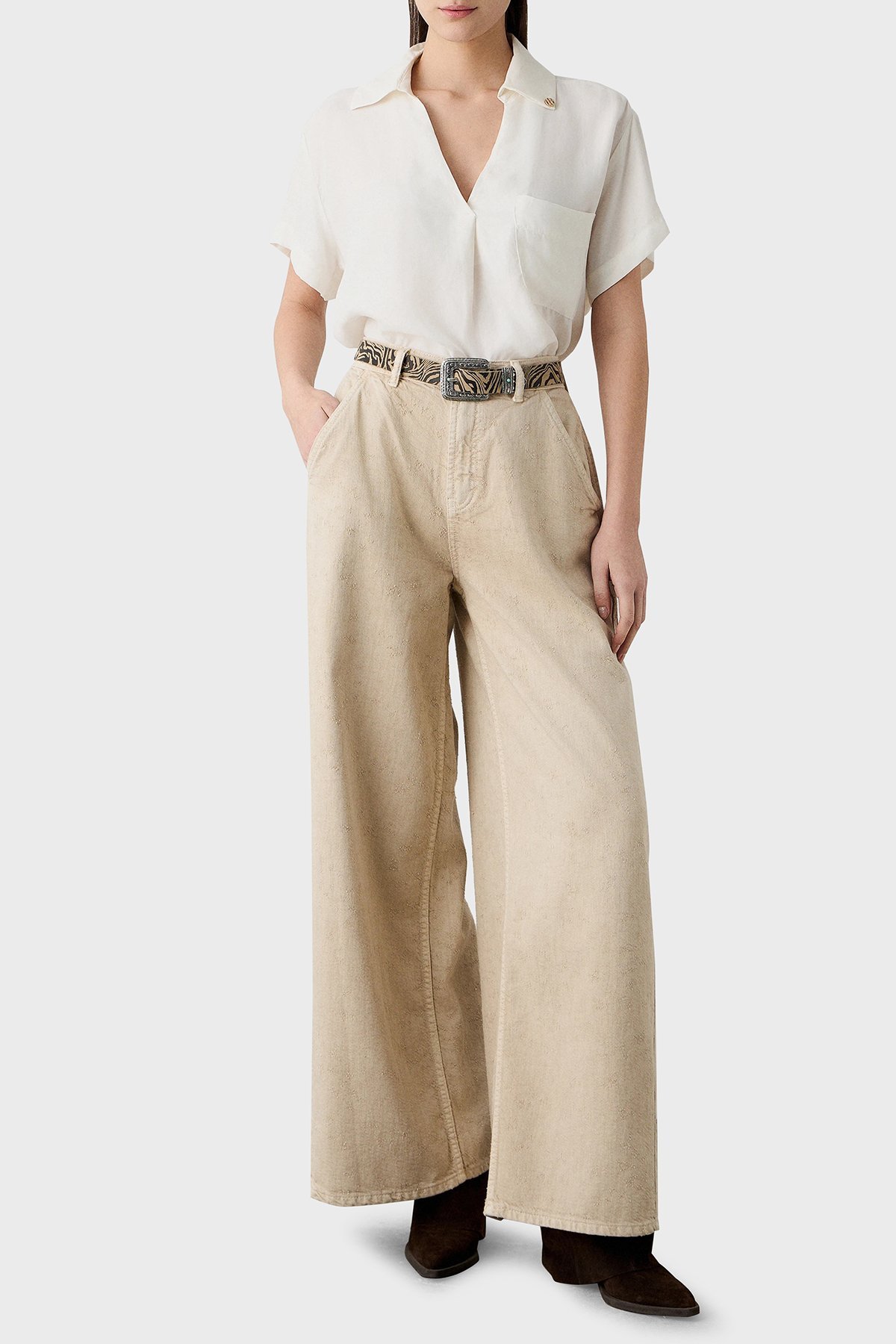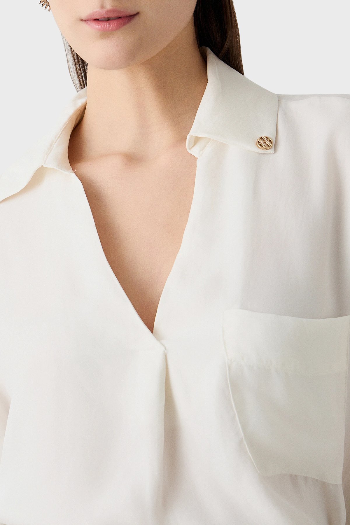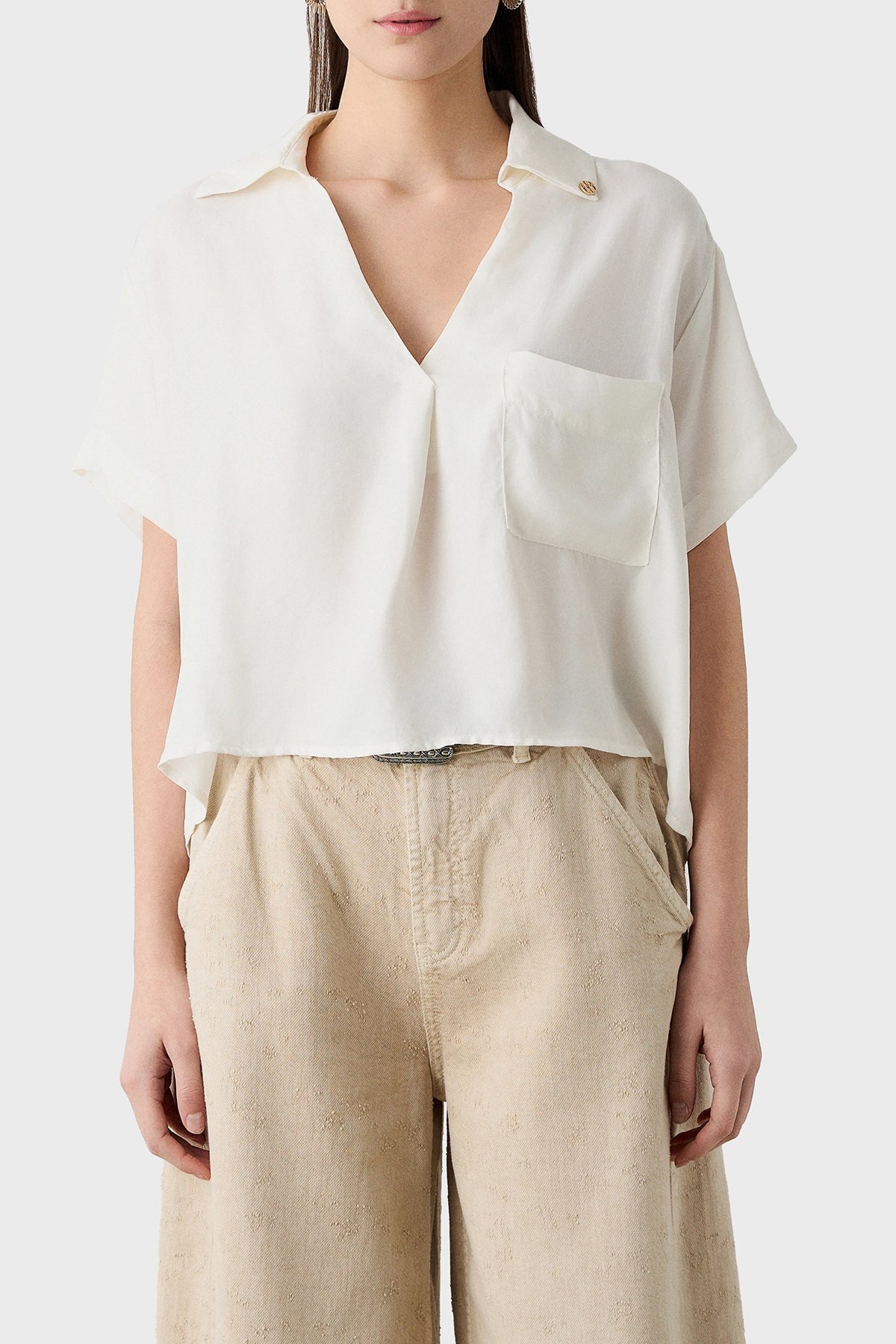 Regular Fit V Yaka Kısa Kollu Bayan Bluz 053-210040.004 EKRU