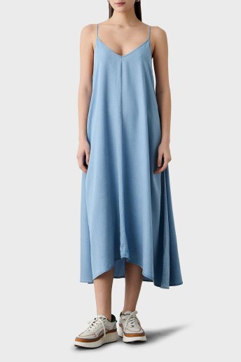 Regular Fit V Yaka Kot Görünümlü Midi Bayan Elbise 053-211803.090 AÇIK MAVİ