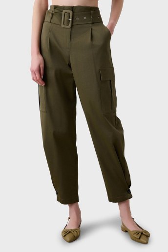 Streç Pamuklu Regular Fit Yüksek Bel Düz Paça Kargo Bayan Pantolon 053-212021.054 HAKİ