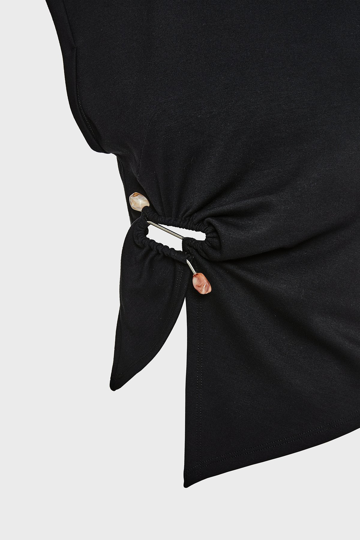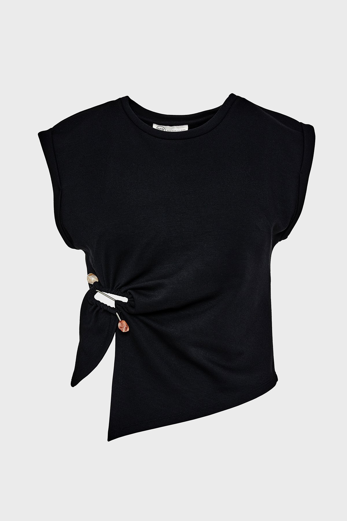 Streç Relaxed Fit Asimetrik Kesim Aksesuar Detaylı Bisiklet Yaka Bayan Bluz 053-210076.080 SİYAH
