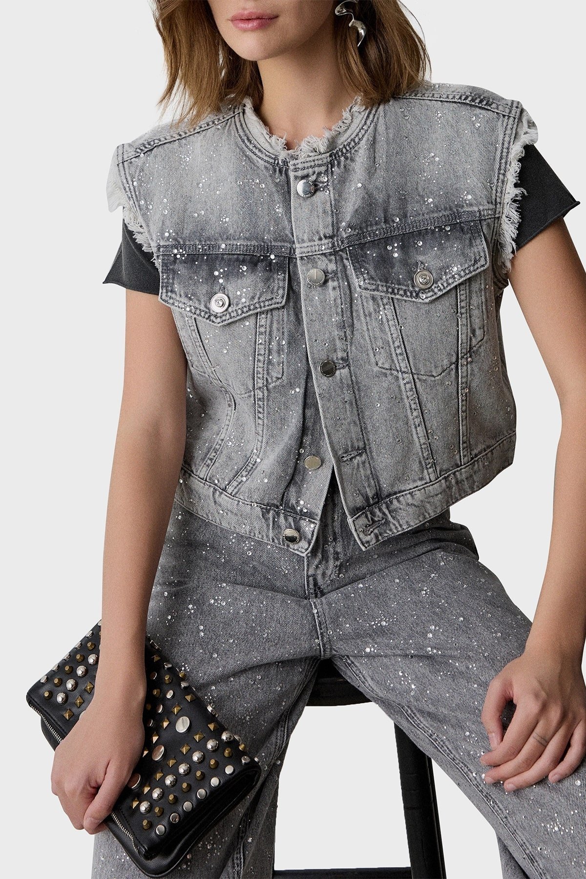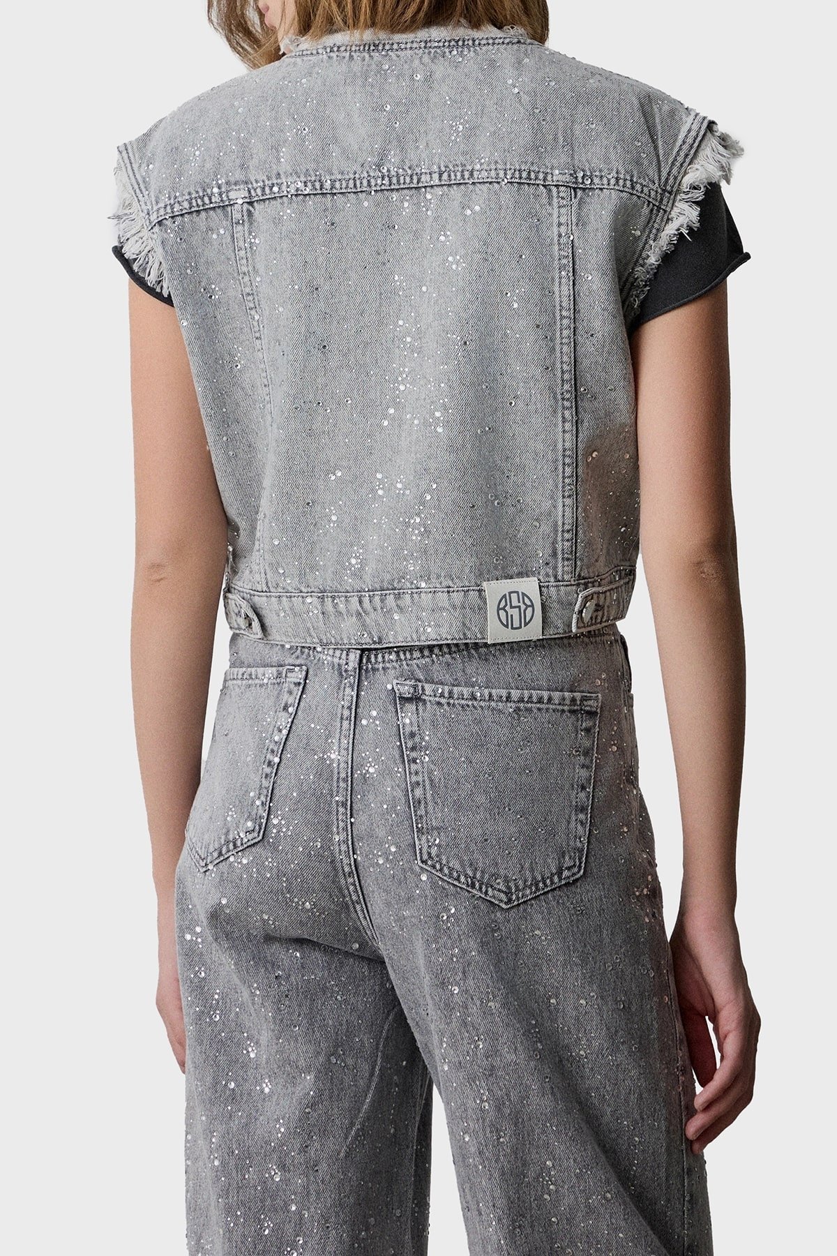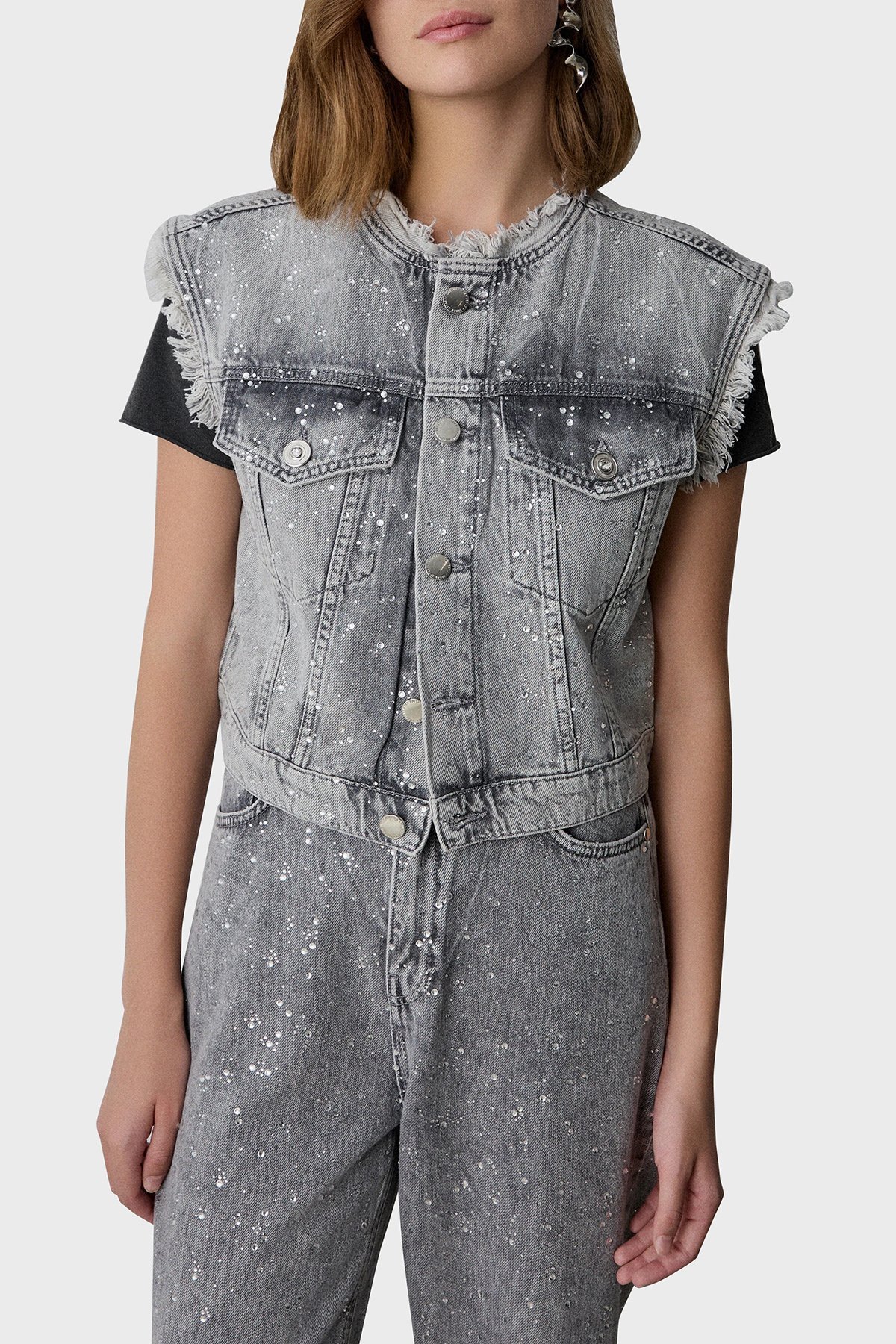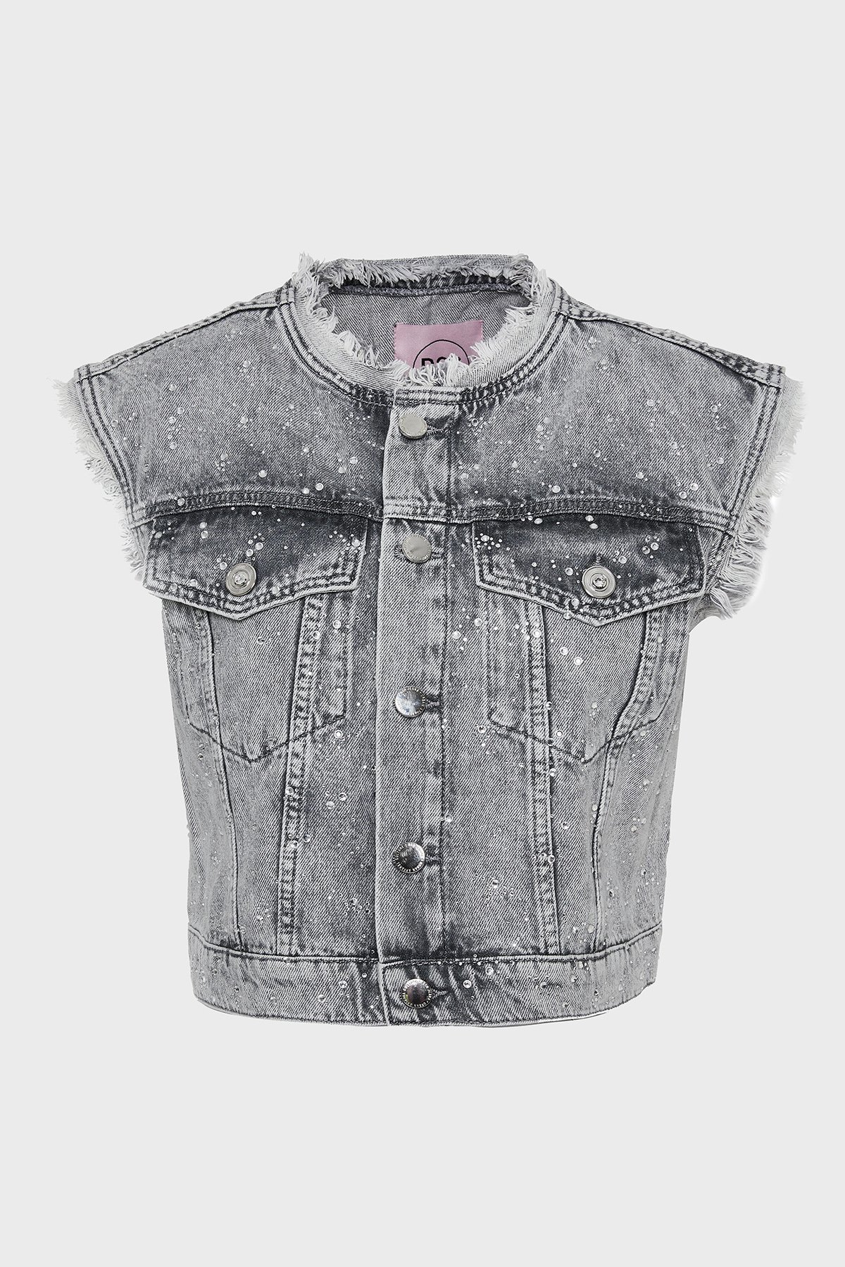 Taşlı % 100 Pamuk Regular Fit Kısa Kot Bayan Yelek 053-229900.093 GRİ