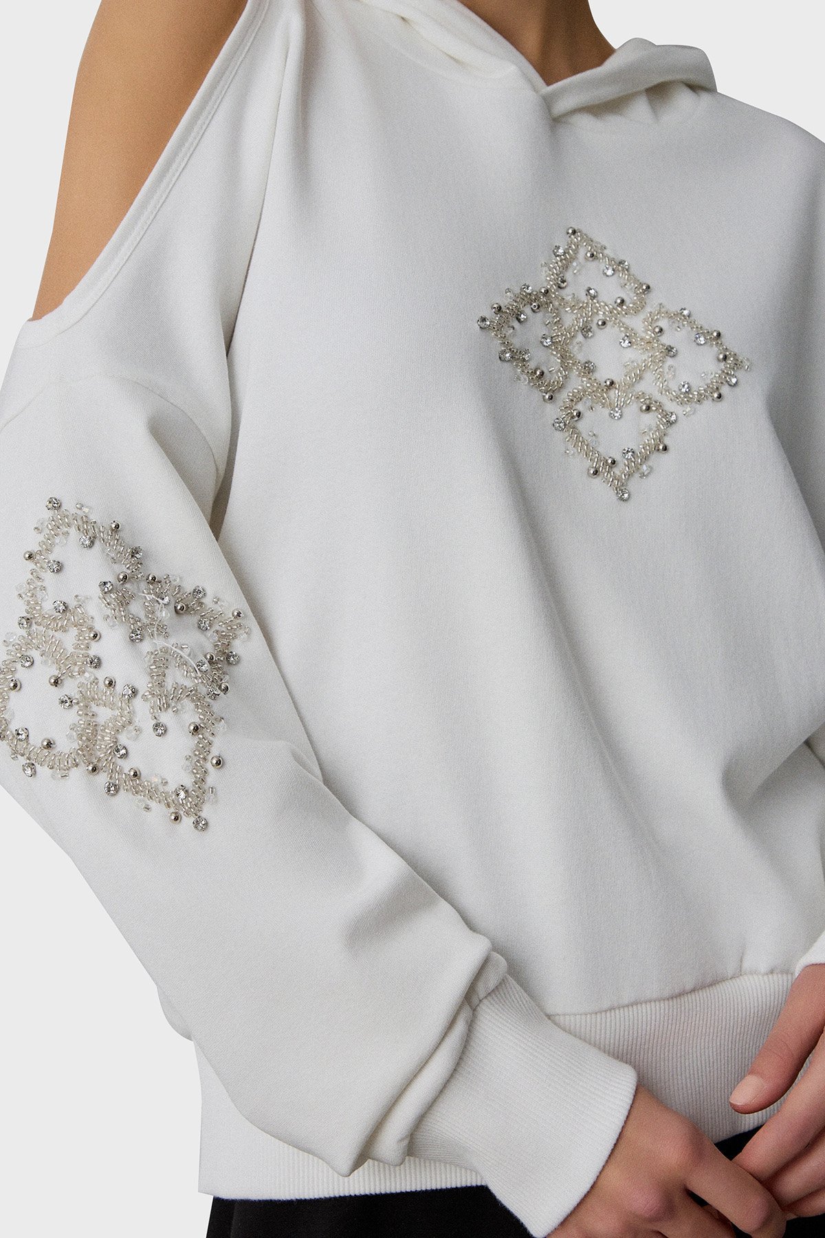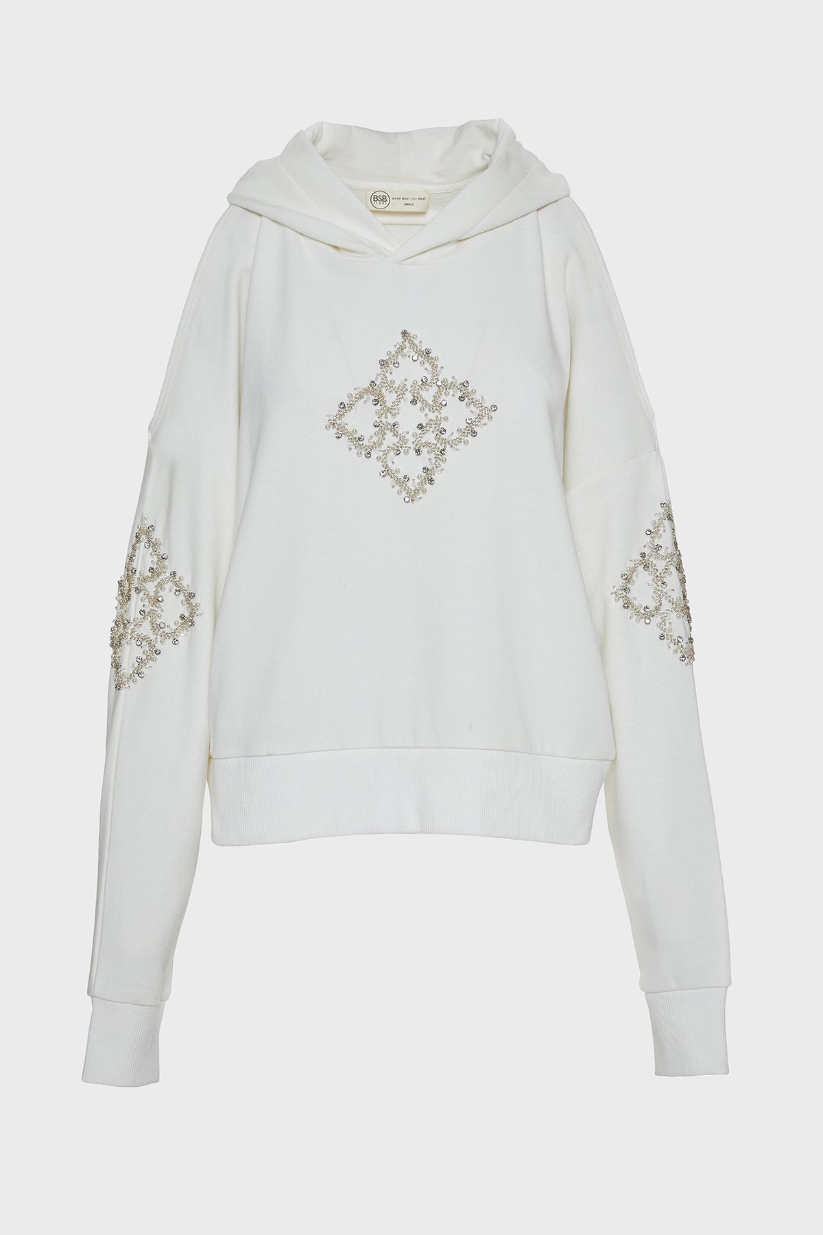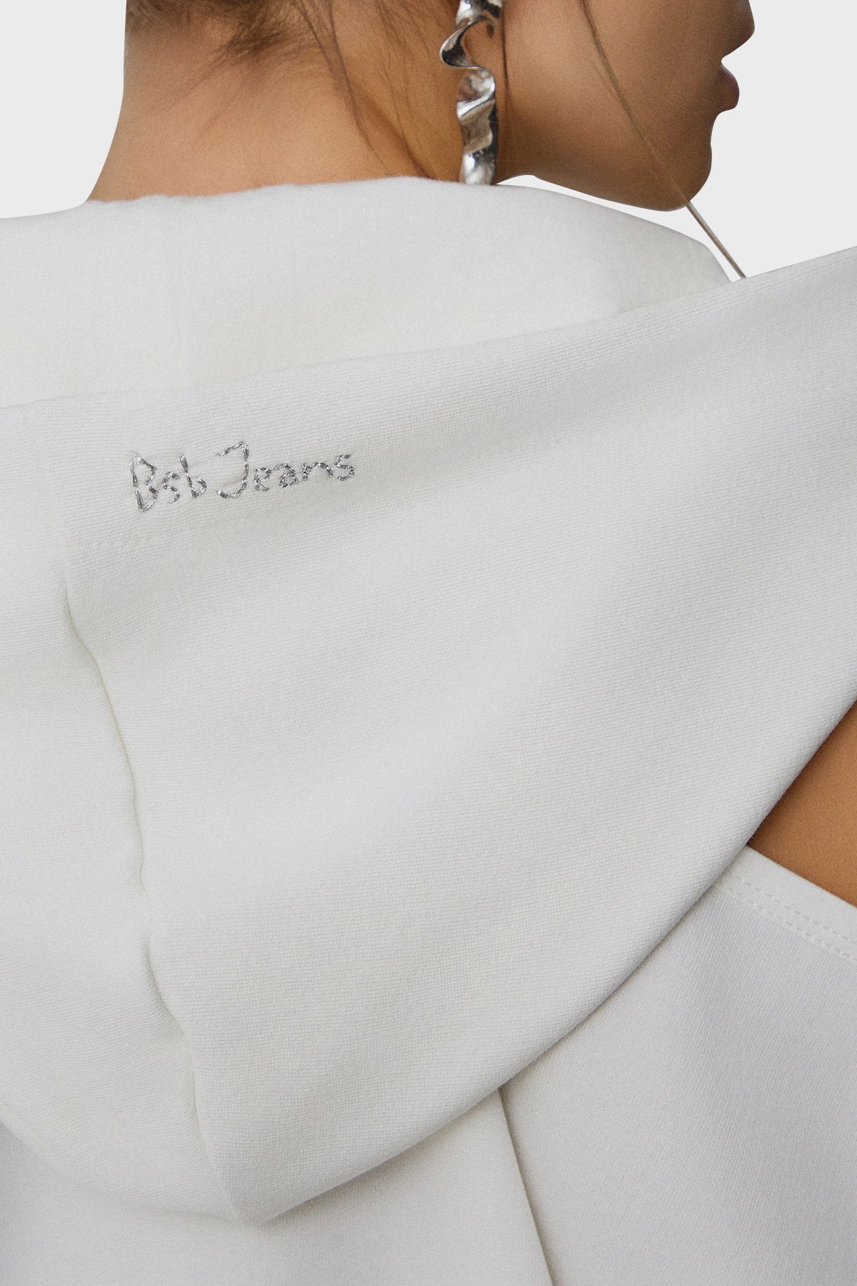Taşlı Pamuklu Regular Fit Sırt Dekolteli Kapüşonlu Bayan Bluz 053-210011.004 BEYAZ