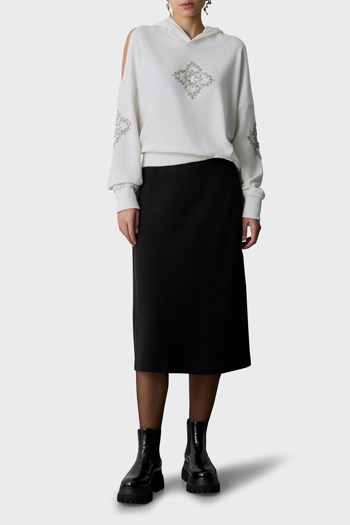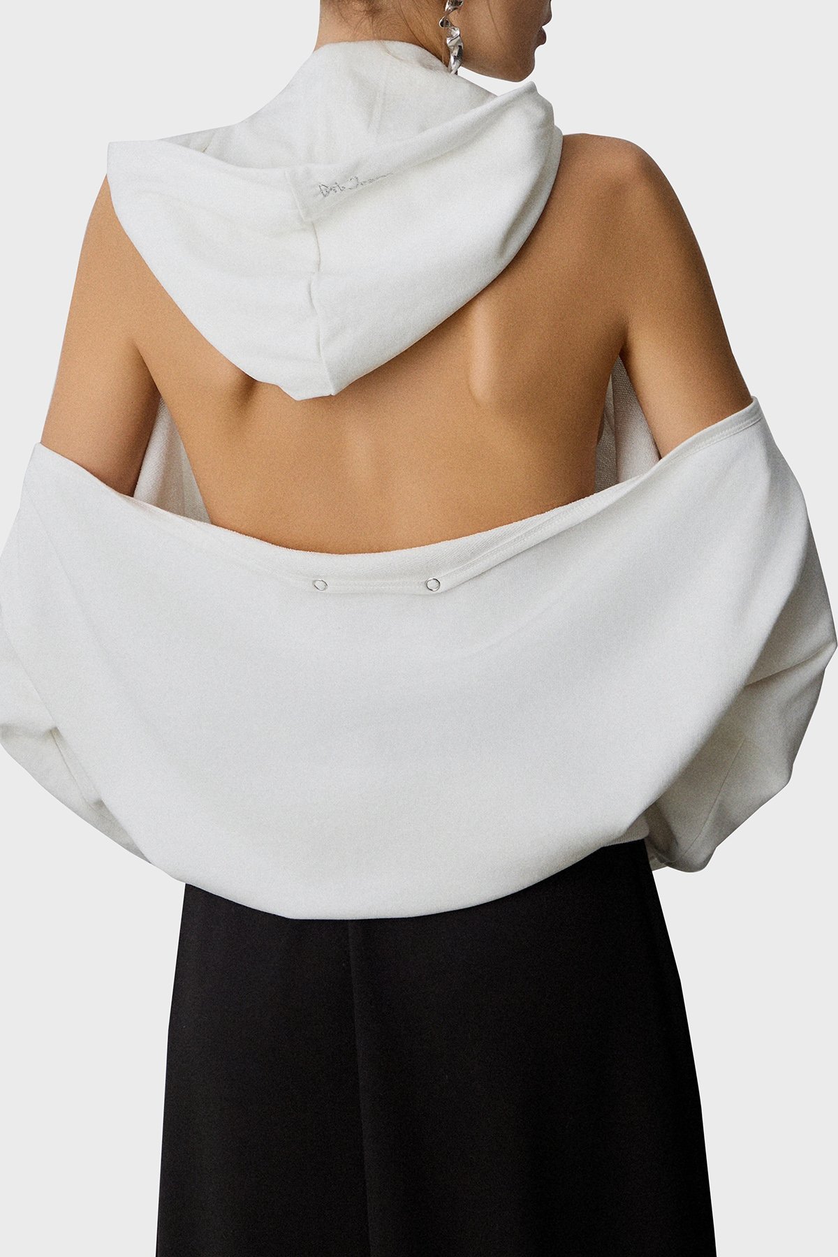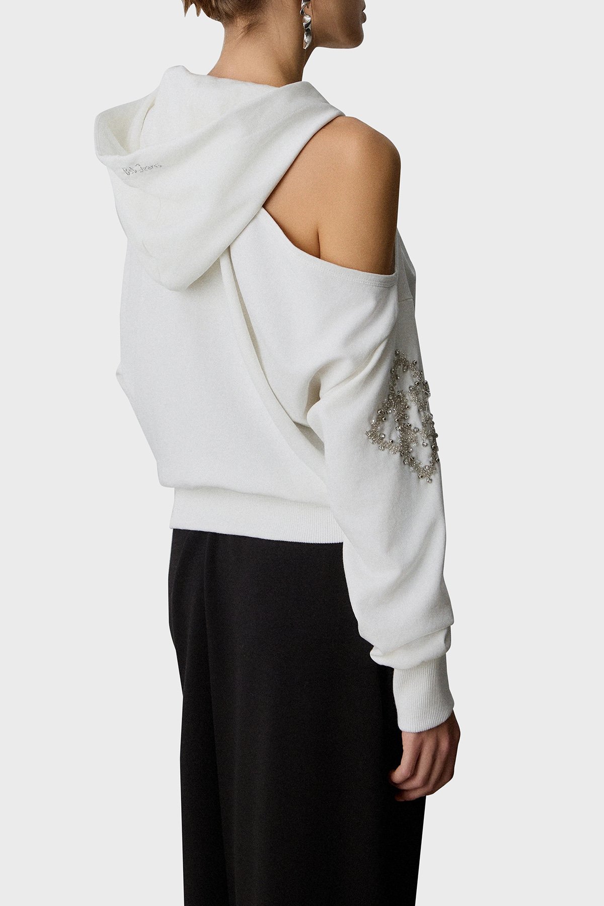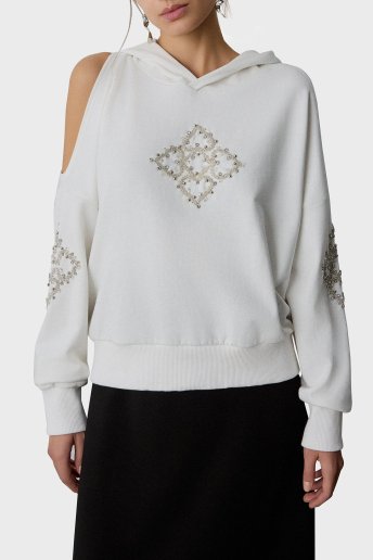 Taşlı Pamuklu Regular Fit Sırt Dekolteli Kapüşonlu Bayan Bluz 053-210011.004 BEYAZ