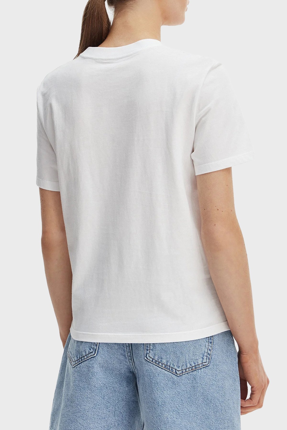 % 100 Pamuk Bisiklet Yaka Logolu LV047C811GYAF Kadın T Shirt LV047C811G YAF BEYAZ